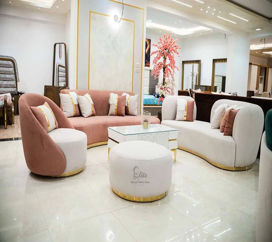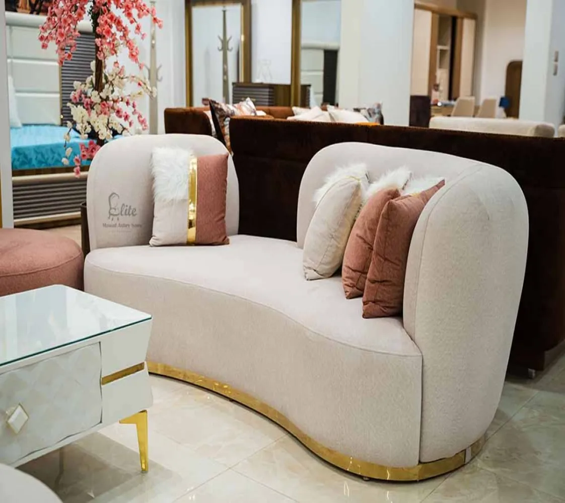 غرفة معيشة مكونة من كنبة 3 مقعد مع كنبة ثنائى 2 مقعد مع فوتيه وبف وترابيزة مودرن الغرفة مصنعه من خشب الزان الروماني بطابع عصرى