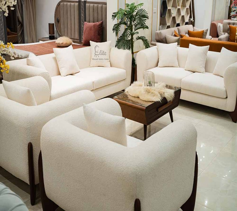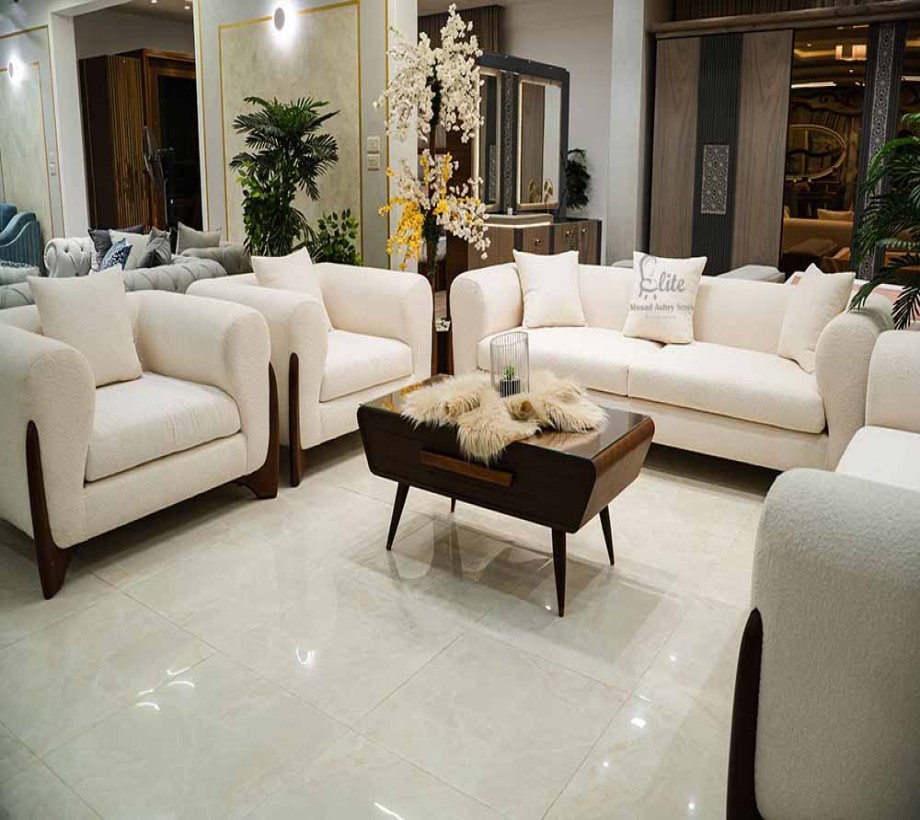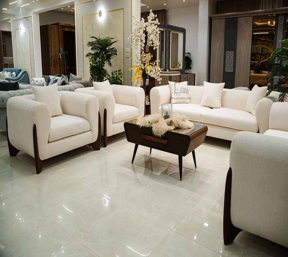 غرفة مكونة من كنبة كبيرة 3 مقعد كنبه 2 مقعد مع 2 فوتيه ترابيزة خشب مودرن الغرفة مصنعه من خشب الزان الطبيعي بطابع عصرى
