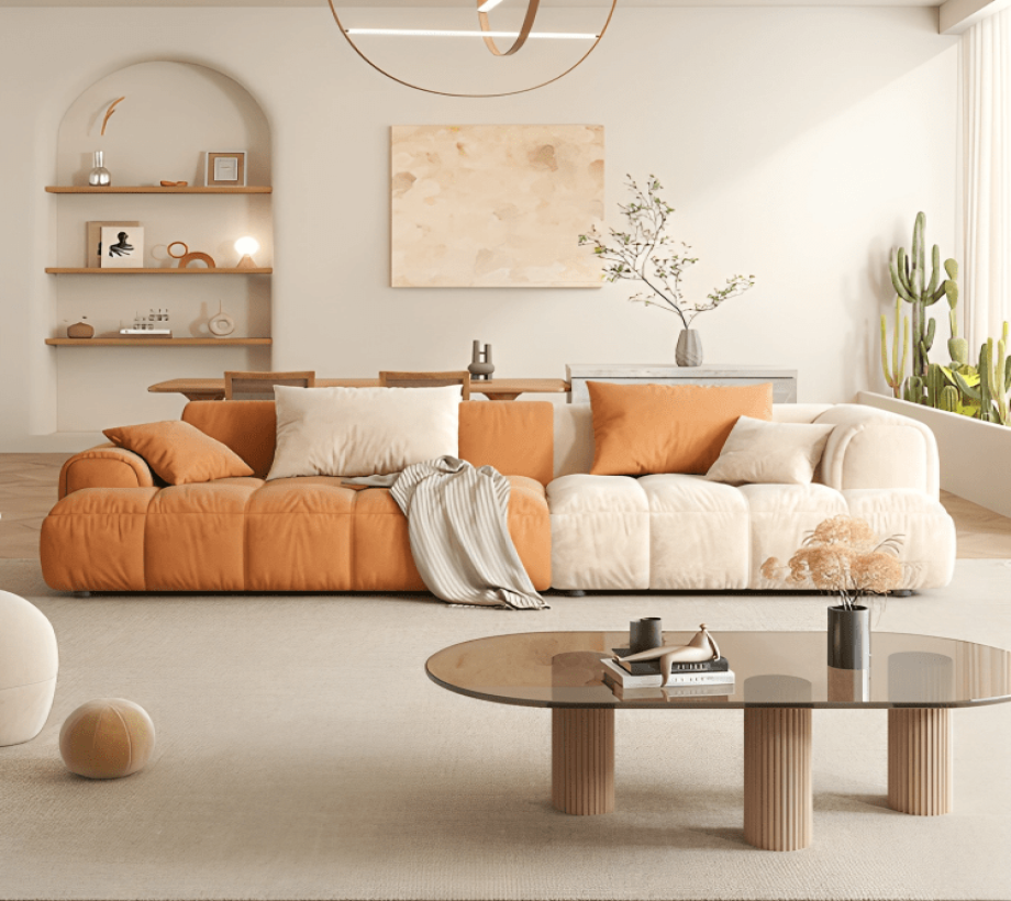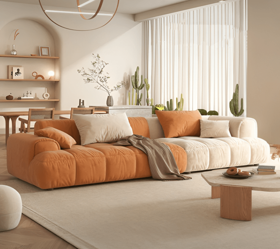 اللون : ابيض داكن * برتقالي المقاس : العرض 270* العمق 100* الإرتفاع 65 سم الخامات : خشب زان - قماش كتان