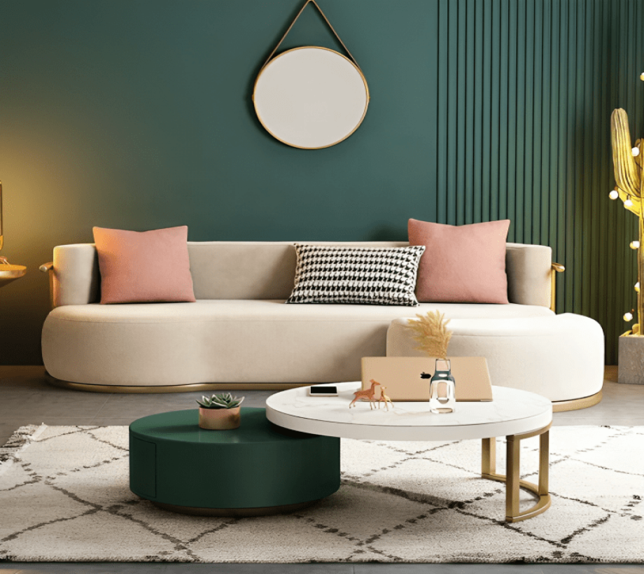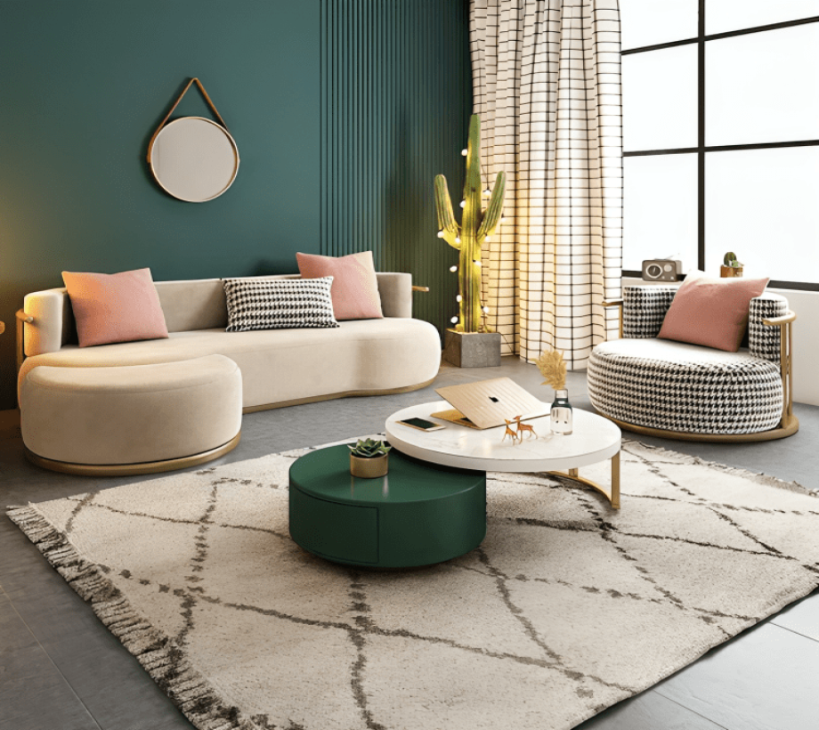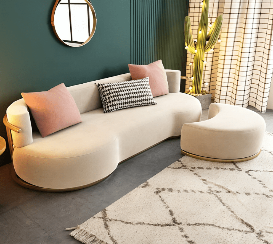 كنبة مودرن مع بوف و فوتيه بتصميم جديد ومبتكر و ألوان مبهجة لجمال بيتك .