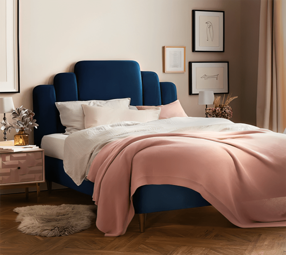 اللون : الكحلي المقاس : العرض180 سم الارتفاع129 سم الخامات : قماش قطيفة - خشب زان طبيعى