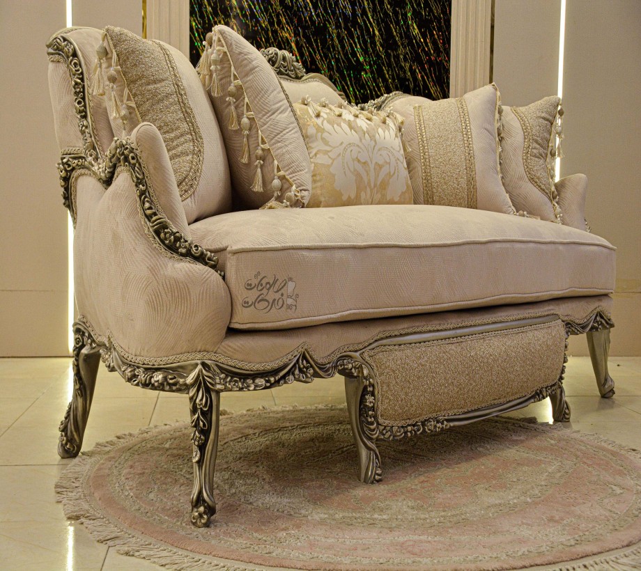 صالون مكون من كنبة 3 مقعد مع كنبه ثنائى 2 مقعد و2 فوتيه وكونسول كلاسيك مع ترابيزة رخام طبيعي الصالون مصنع من خشب الزان الطبيعي بطابع كلاسيكى مميز