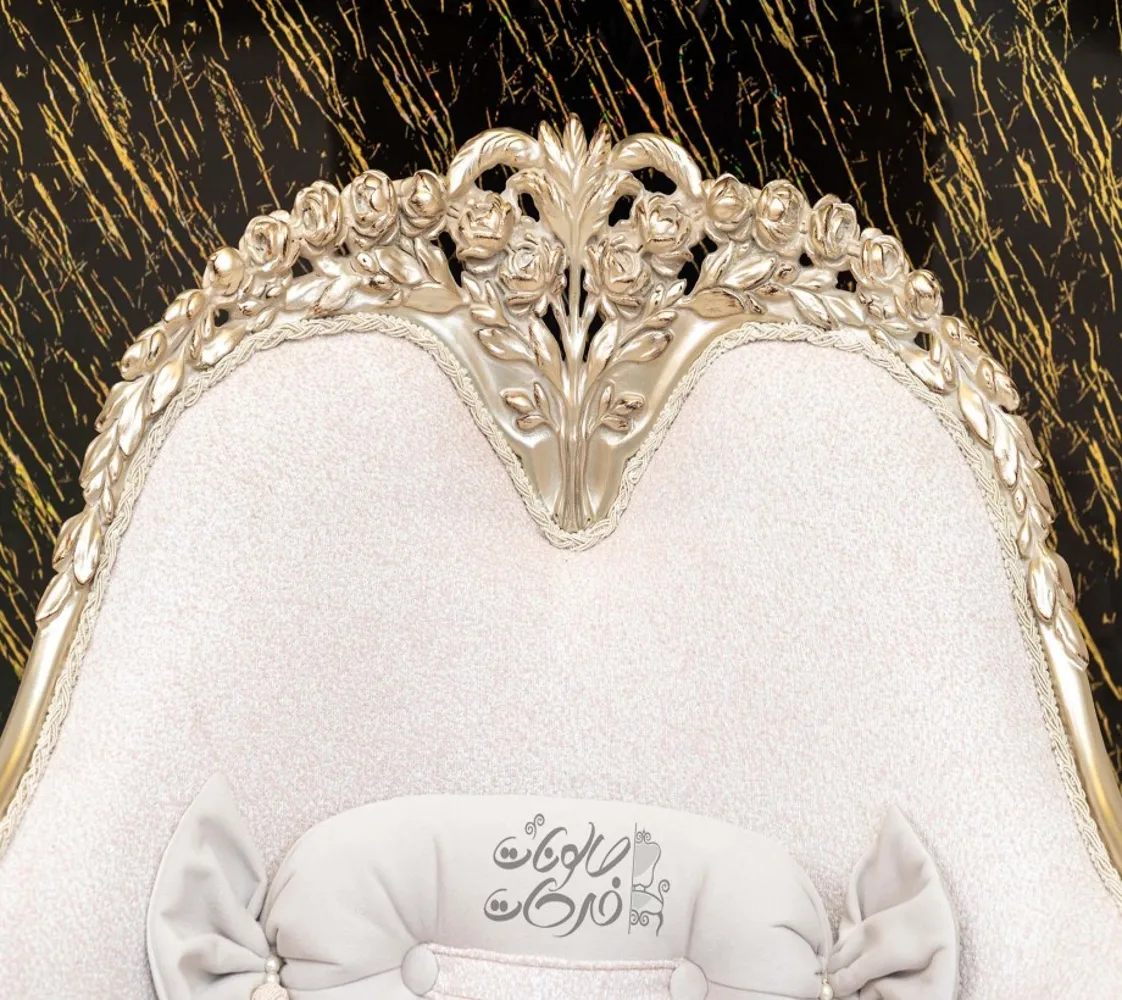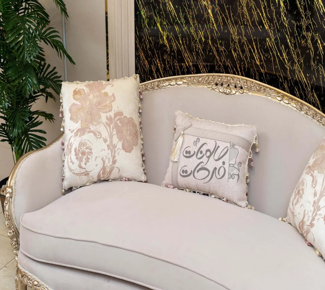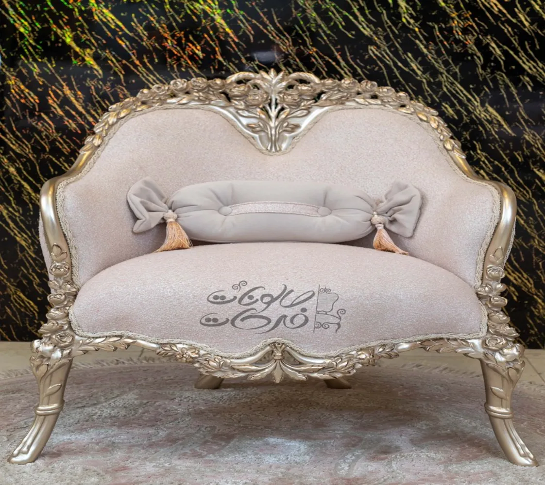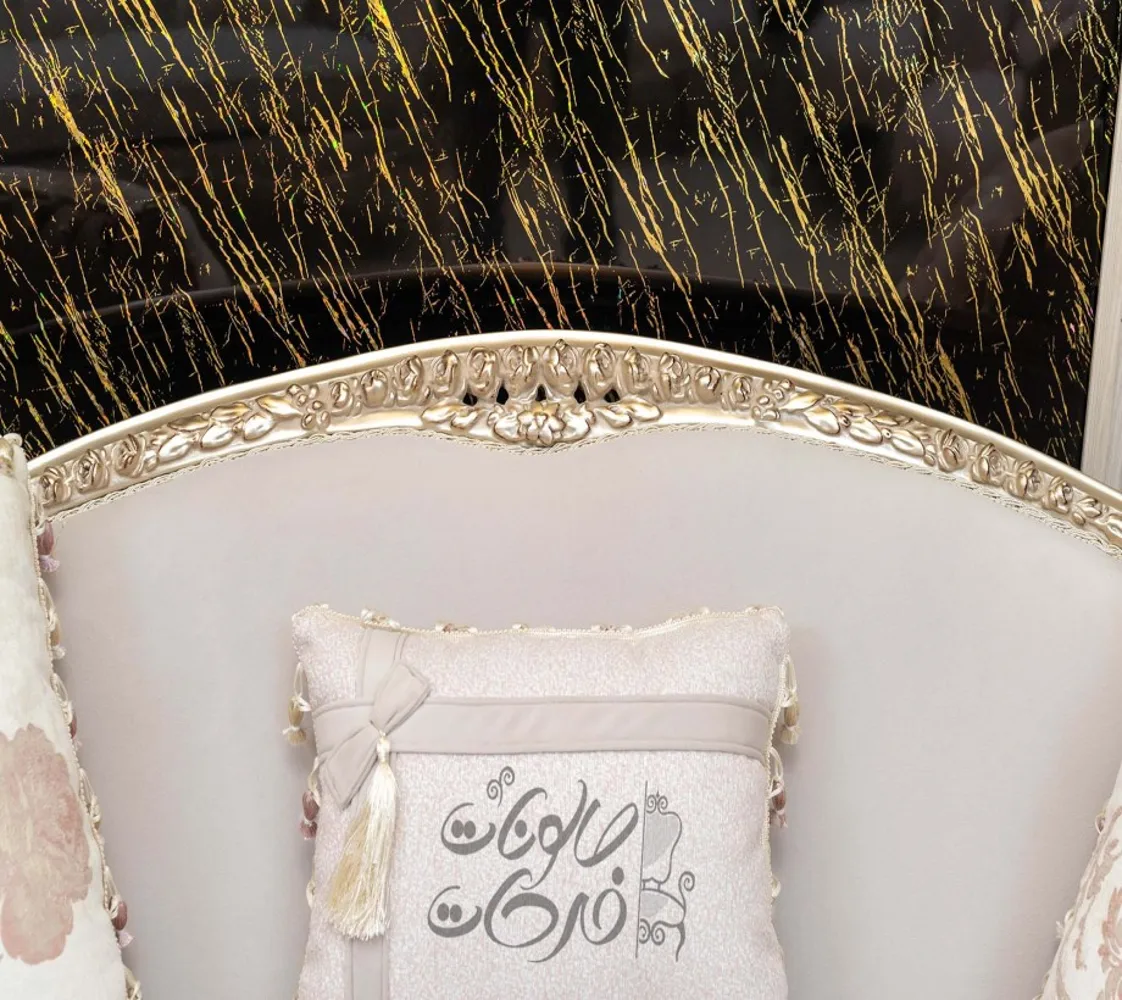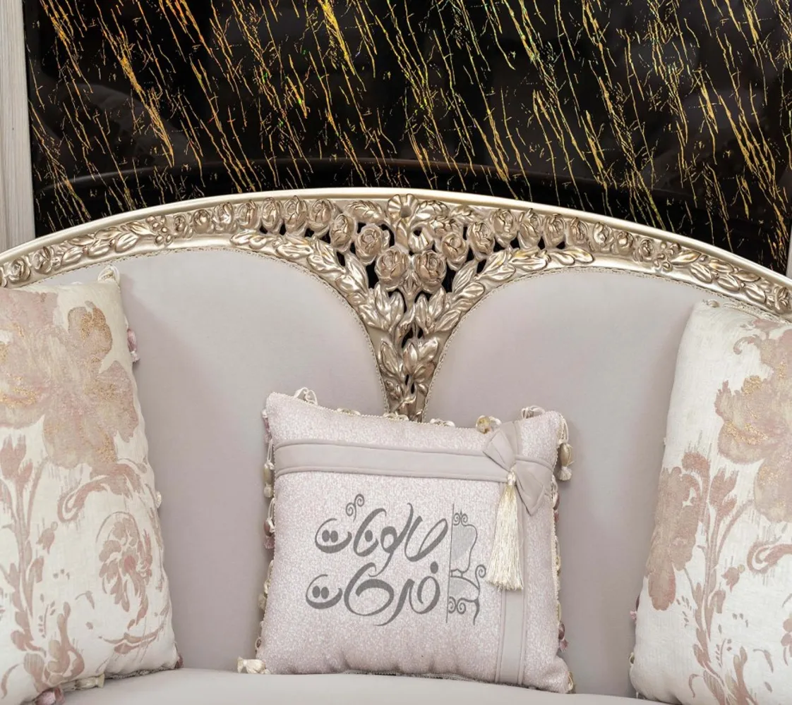 صالون نيو كلاسيك مكون من : كنبه كبيرة . كنبه ثنائى 2 مقعد . 2 فوتيه . بانكيت . ترابيزة رخام الصالون مصنع من خشب الزان الطبيعى بطابع كلاسيكى مميز