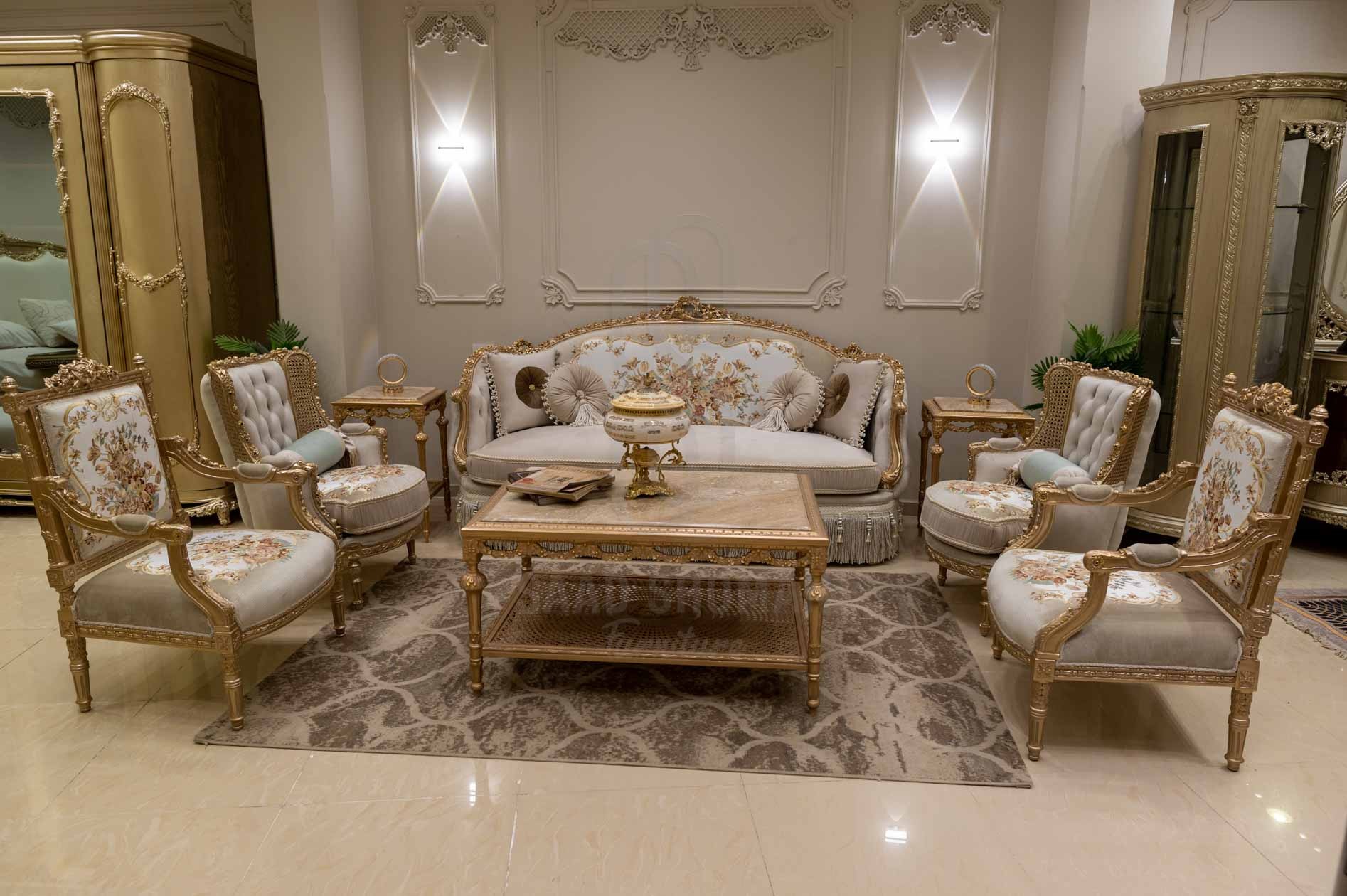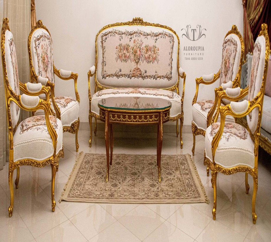 صالون مكون من كنبه كبيره . ٤ فوتيه . ترابيزة رخام الصالون مصنع من خشب الزان الطبيعى بطابع عصرى مميز