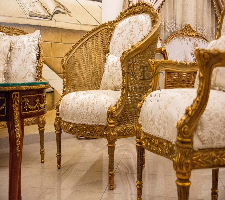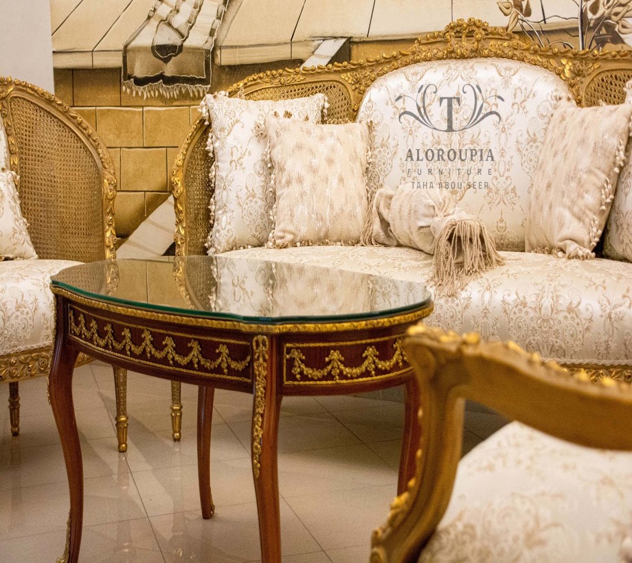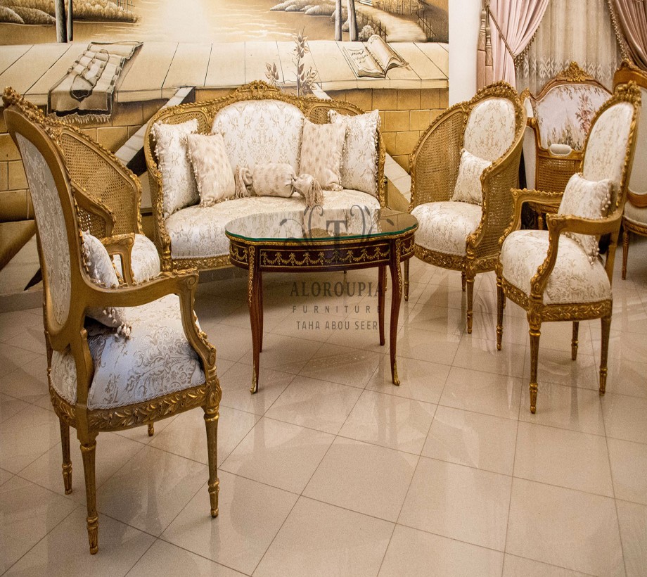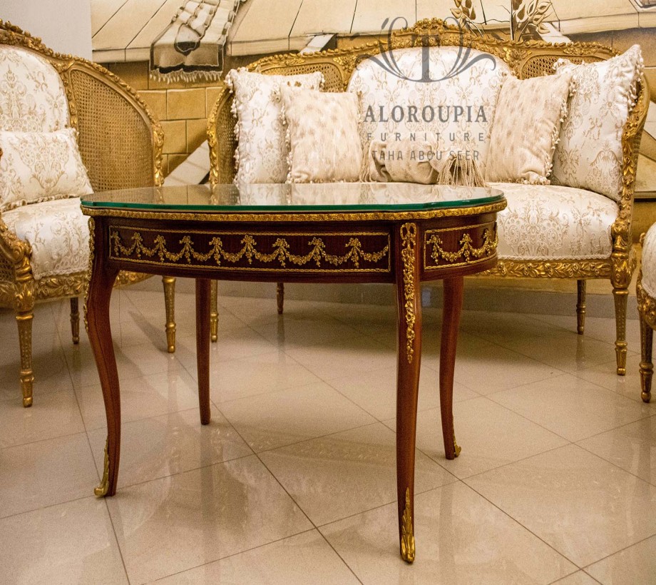 صالون كلاسيك مكون من : كنبه كبيره . 4 فوتيه . ترابيزة رخام مع مزيج من النحاس الصالون مصنع من خشب الزان الطبيعى مع النحاس بطابع كلاسيكى نحاس