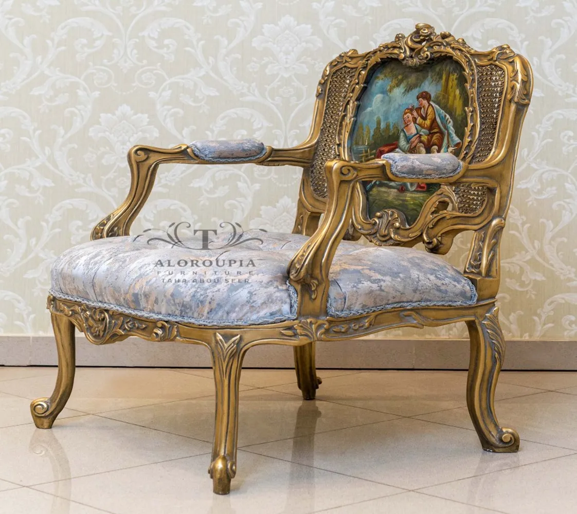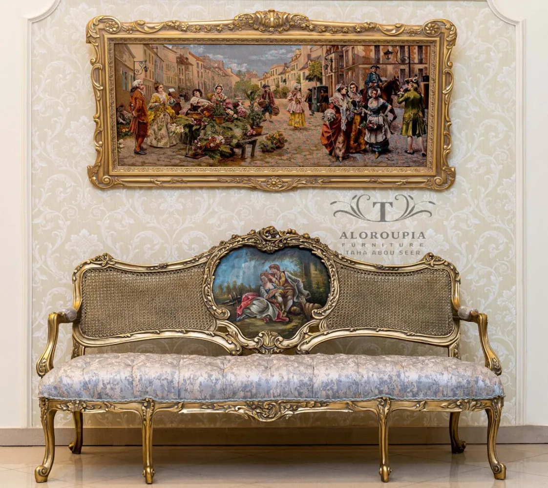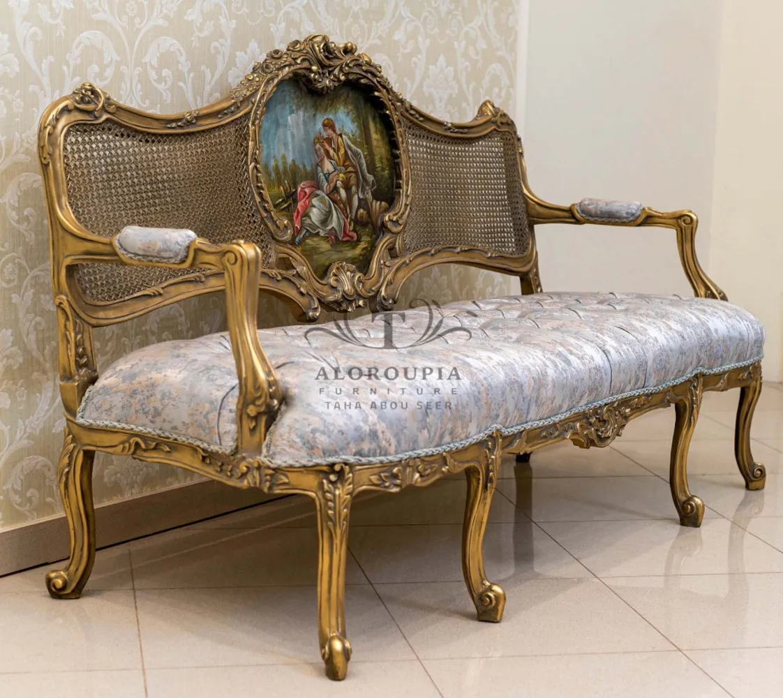 صالون عتيق على الطراز الكلاسيكي صالون مكون من: كنبة كبيرة مع 2 كرسي انتيك الصالون مصنوع من خشب الزان الطبيعي