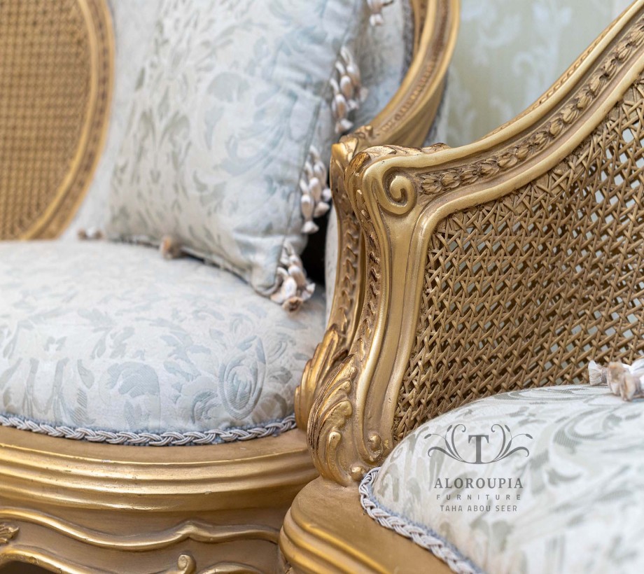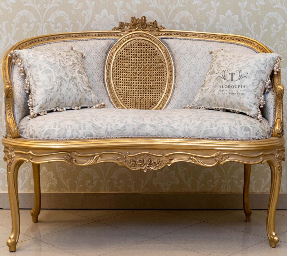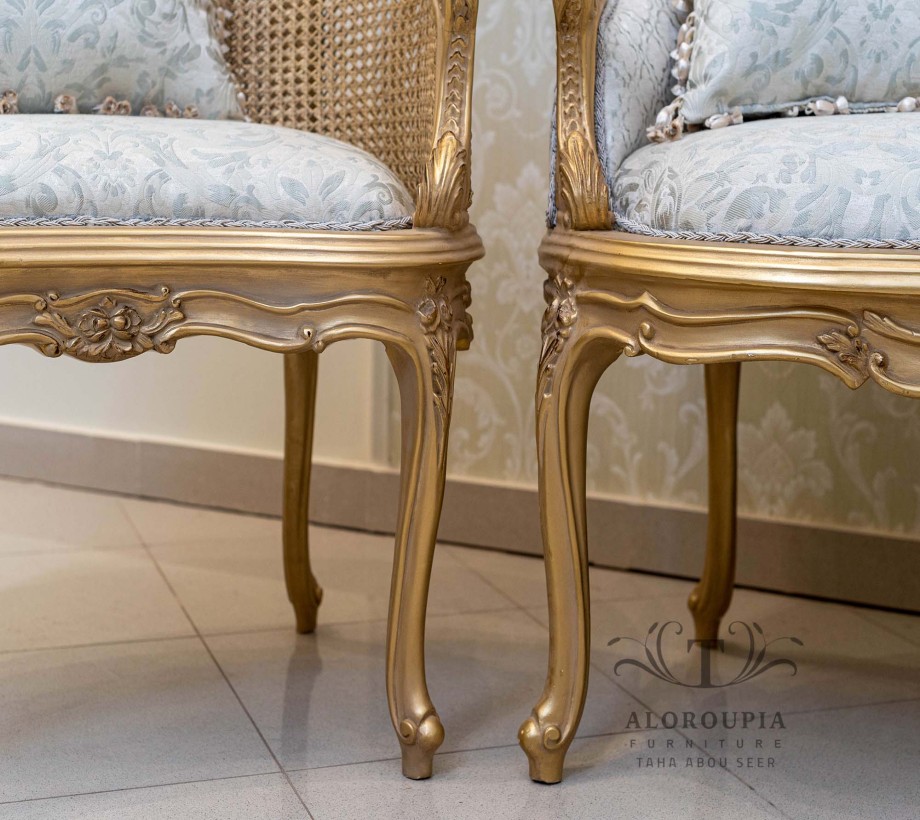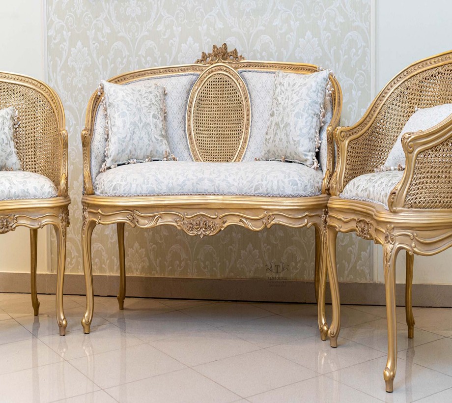 صالون أنتيك على الطراز الكلاسيكي صالون مكون من: كنبة كبيرة مع 2 كرسي انتيك الصالون مصنوع من خشب الزان الطبيعي