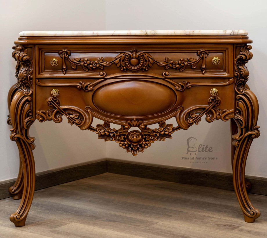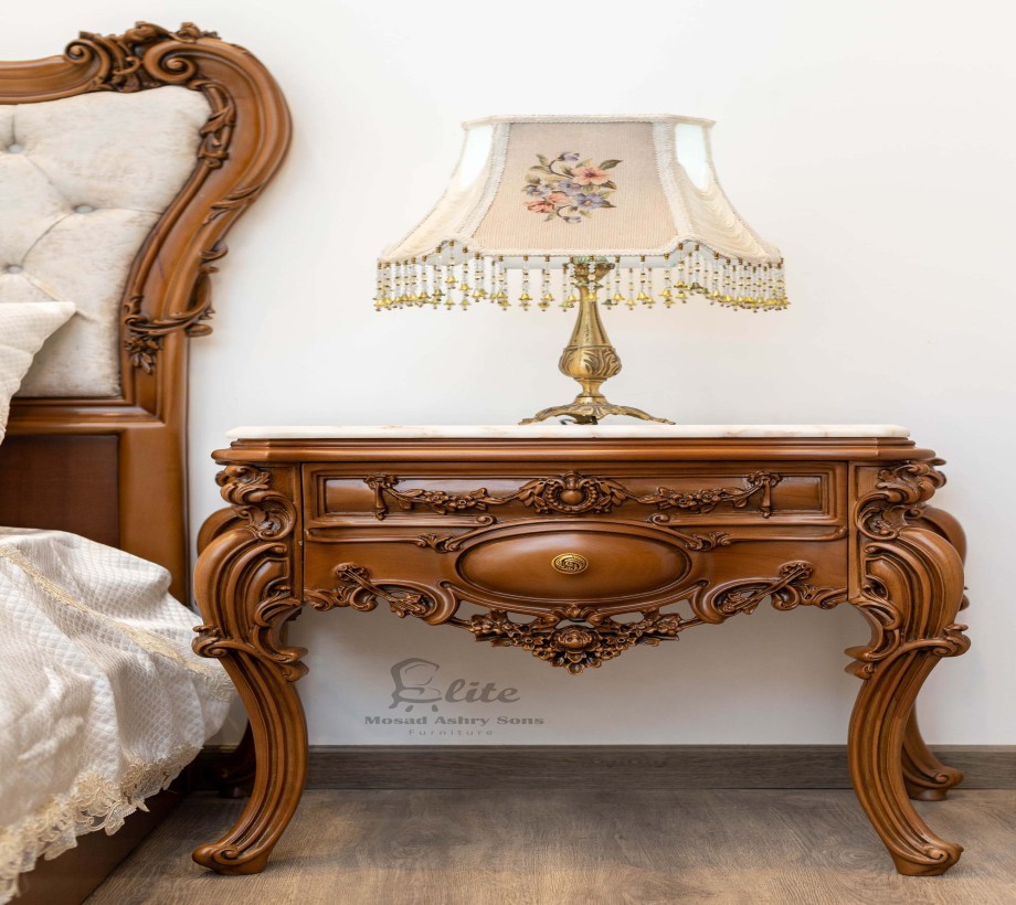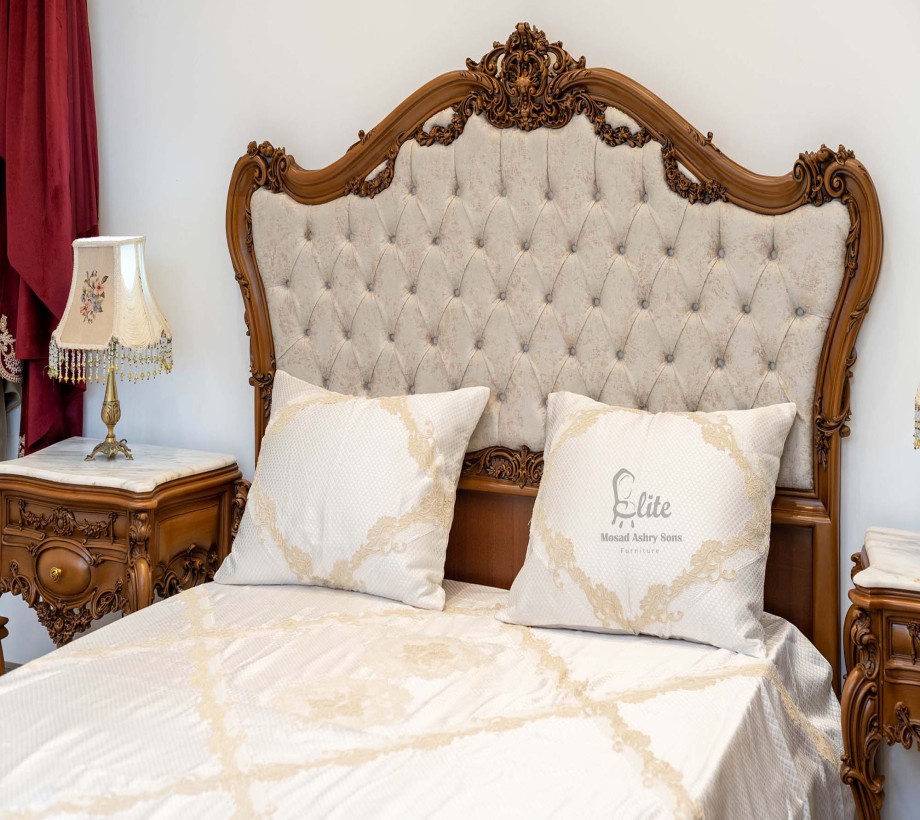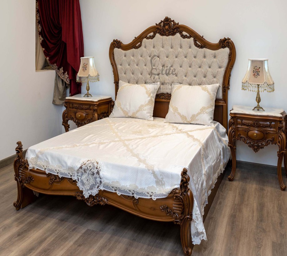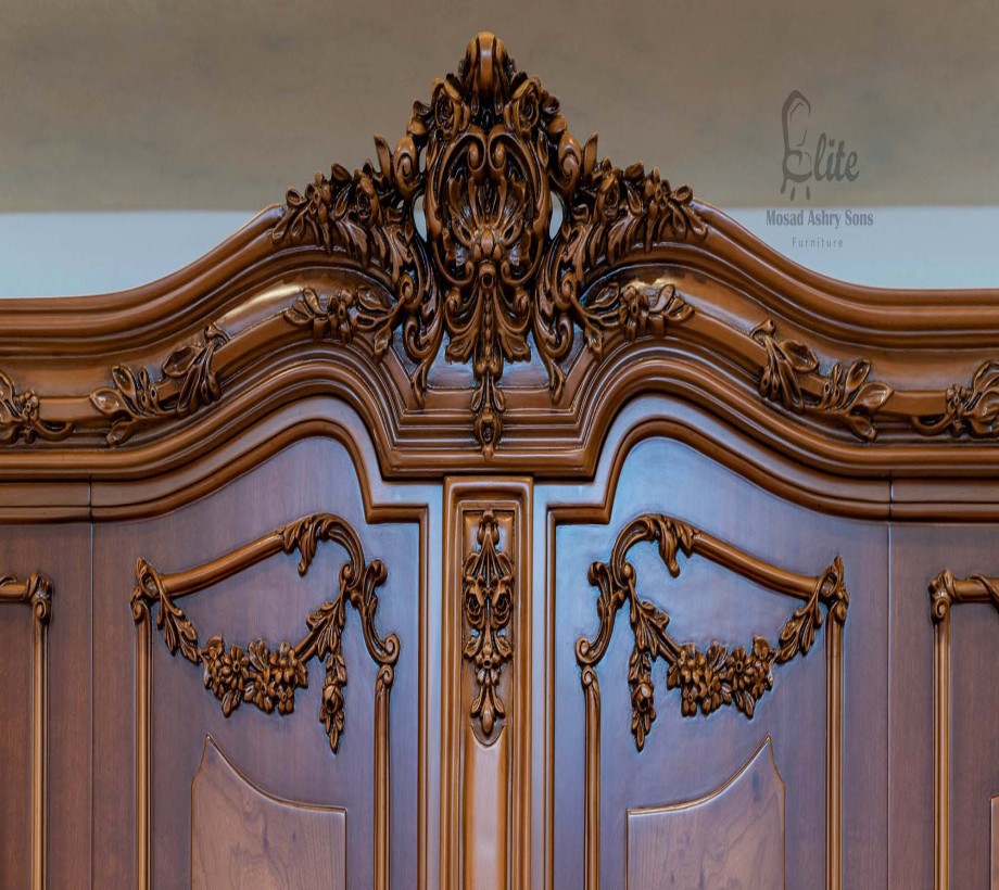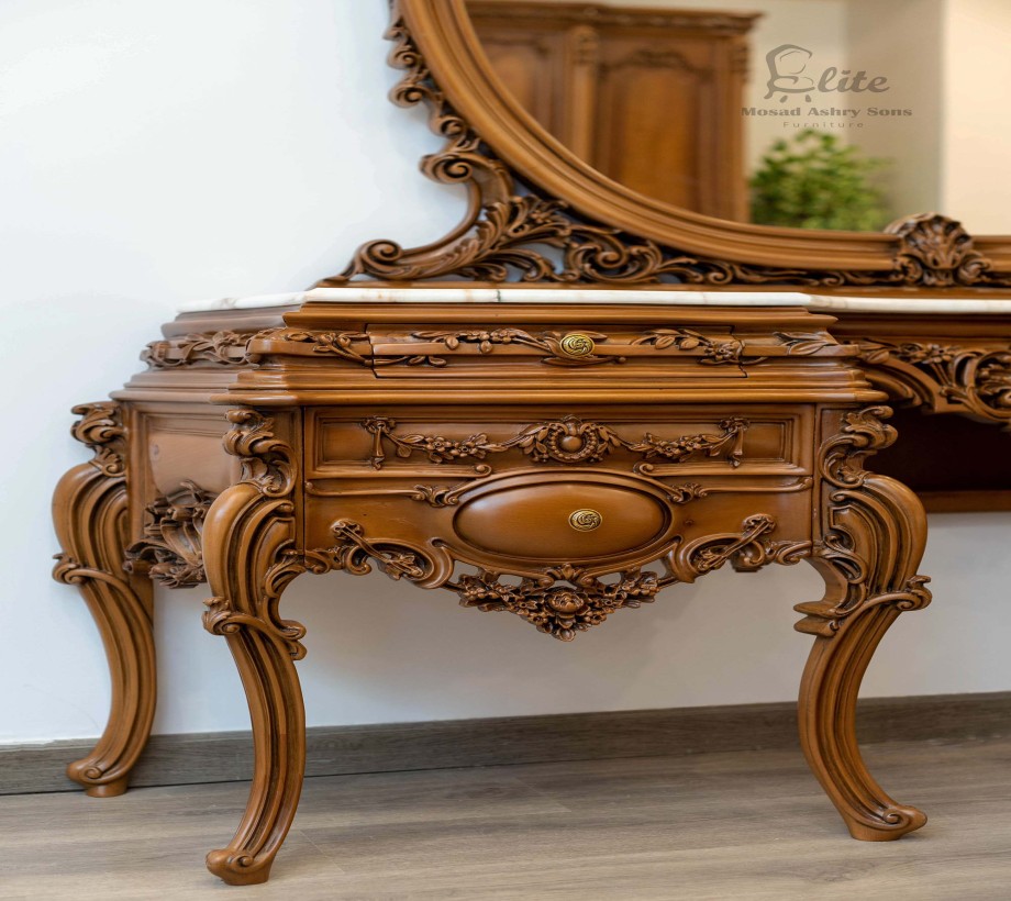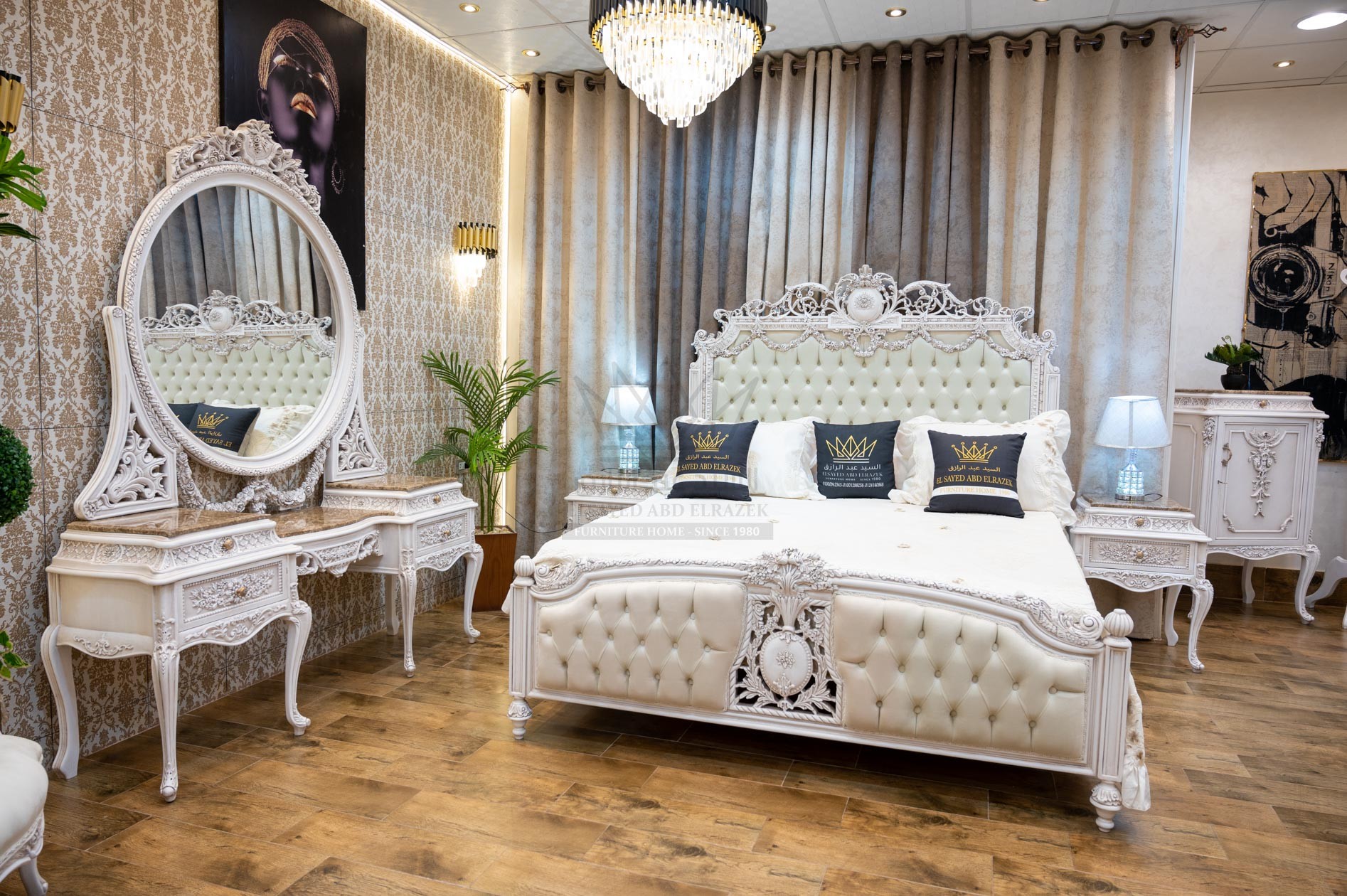 غرفة نوم مكونة من : سرير . دولاب . تسريحه . كرسى تسريحه . شماعة ملابس الغرفة مصنعه من خشب الزان الطبيعى بطابع كلاسيكى مميز