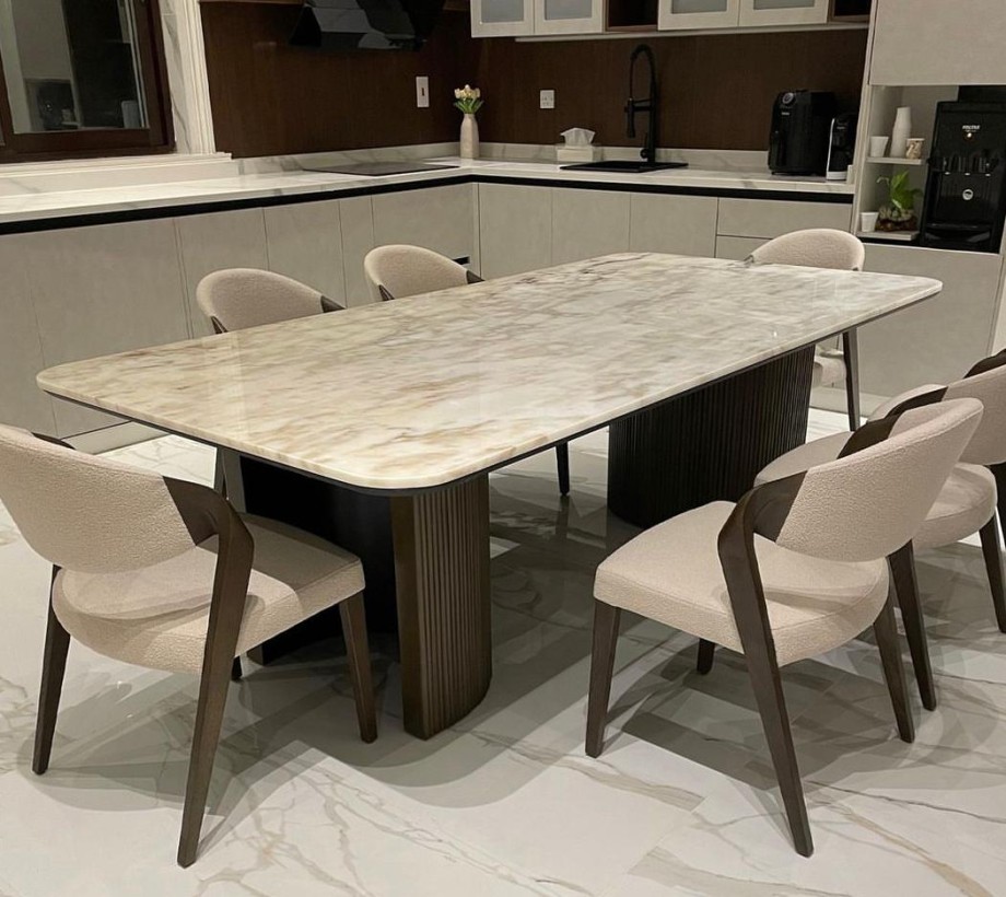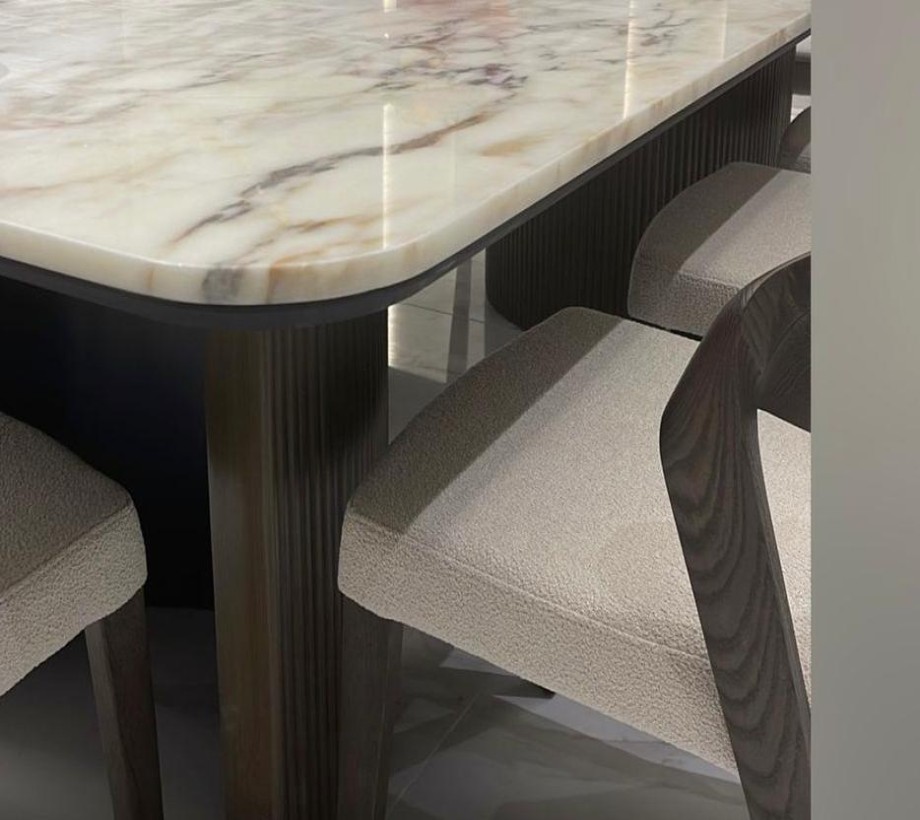 غرفة طعام مكونة من : ترابيزة . 6 كراسي الغرفه مصنعه من خشب الزان الطبيعى بطابع عصرى مميز