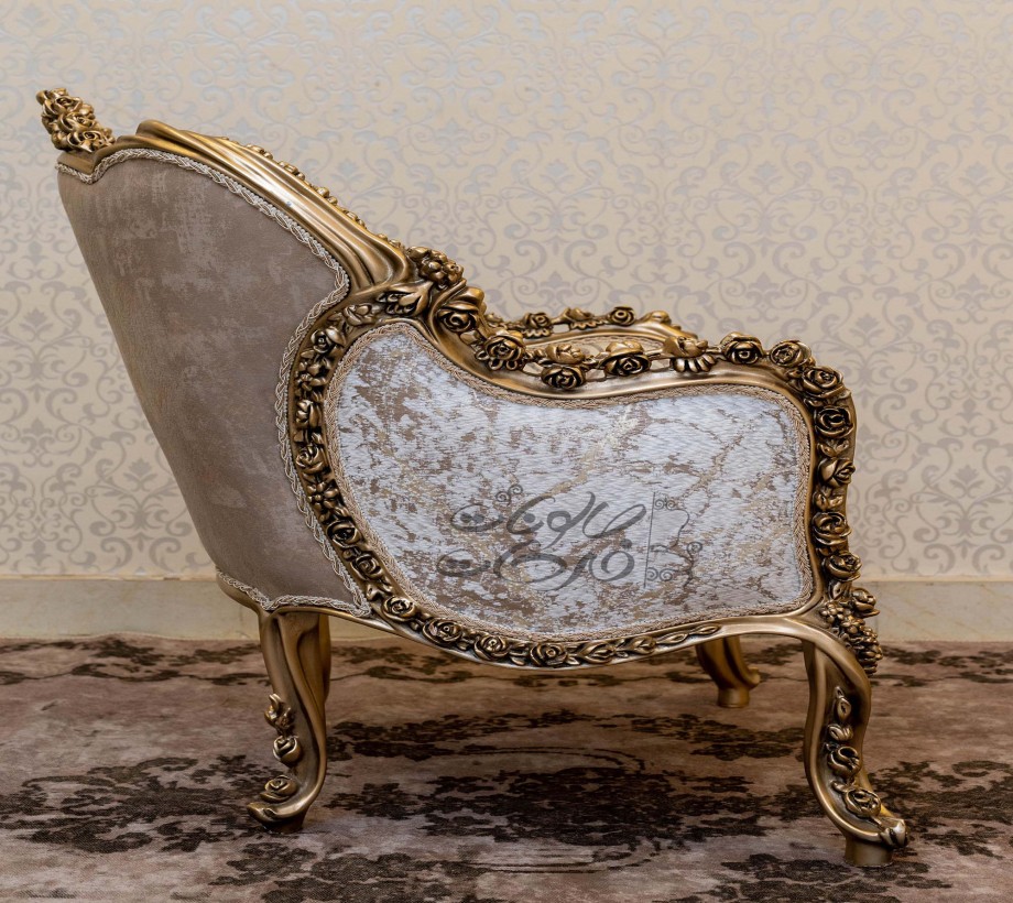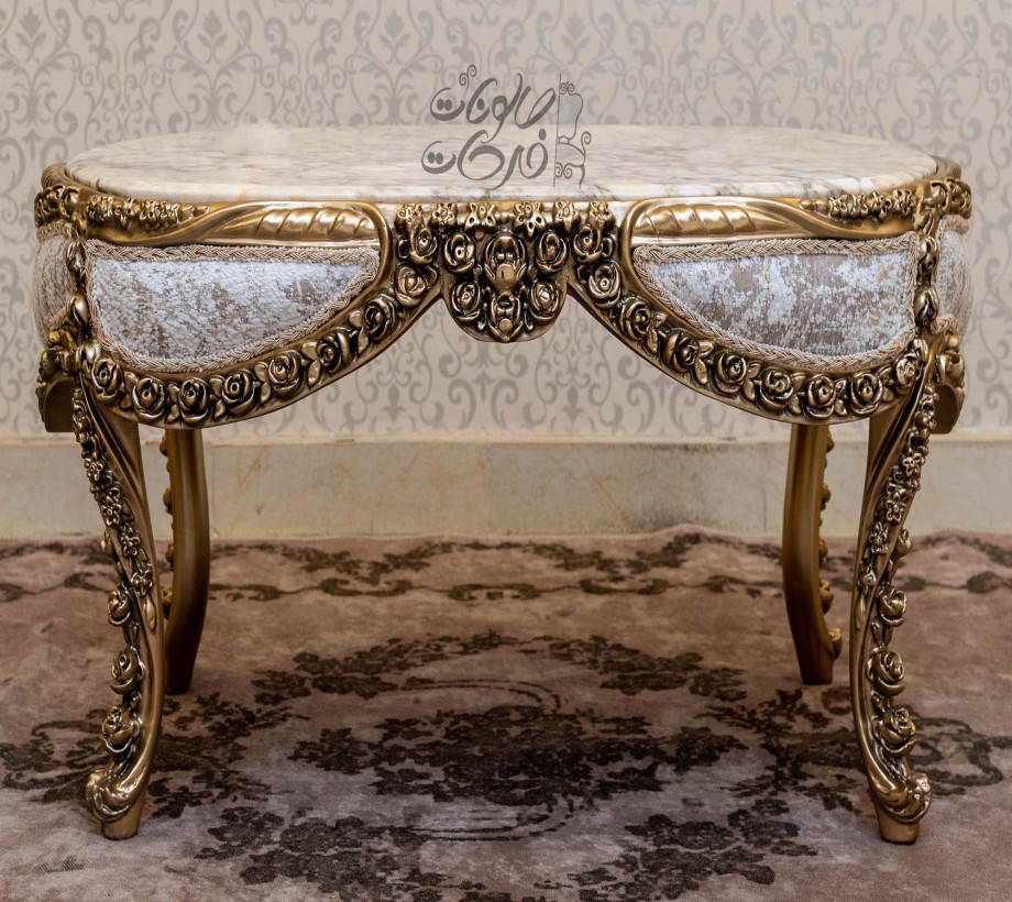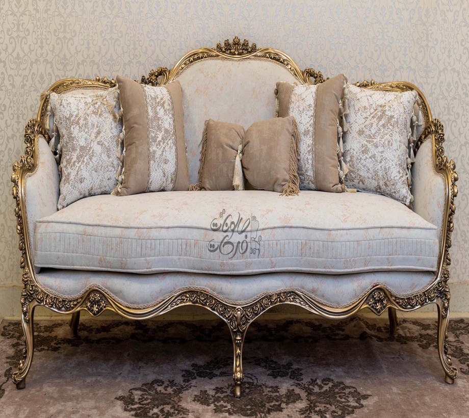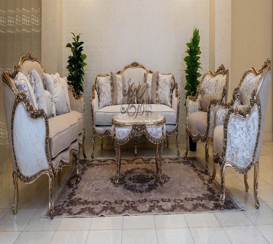 صالون مكون من : كنبه كبيره . كنبة ثنائى 2 مقعد . 2 فوتيه . بانكيت . ترابيزة رخام الصالون مصنع من خشب الزان الطبيعى بطابع كلاسيكى مميز يليق بمنزلك