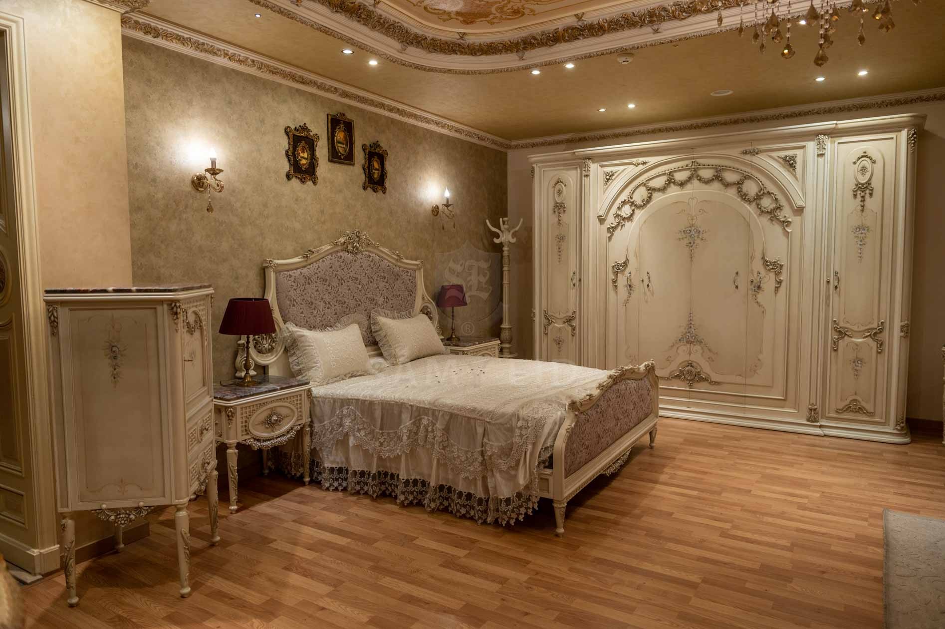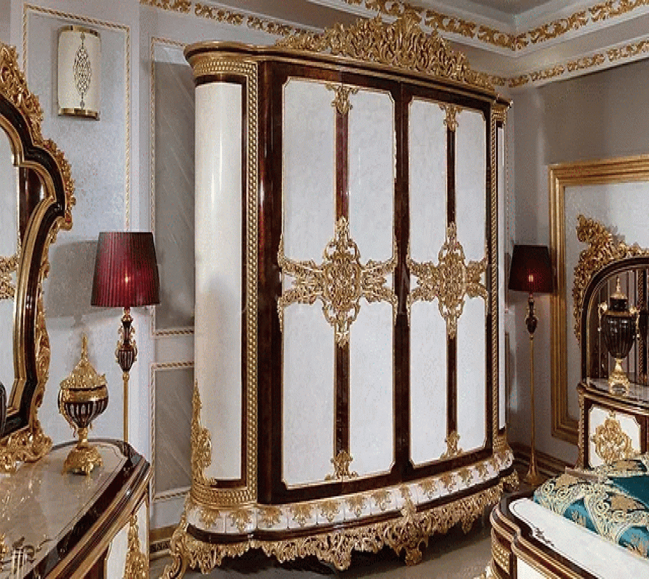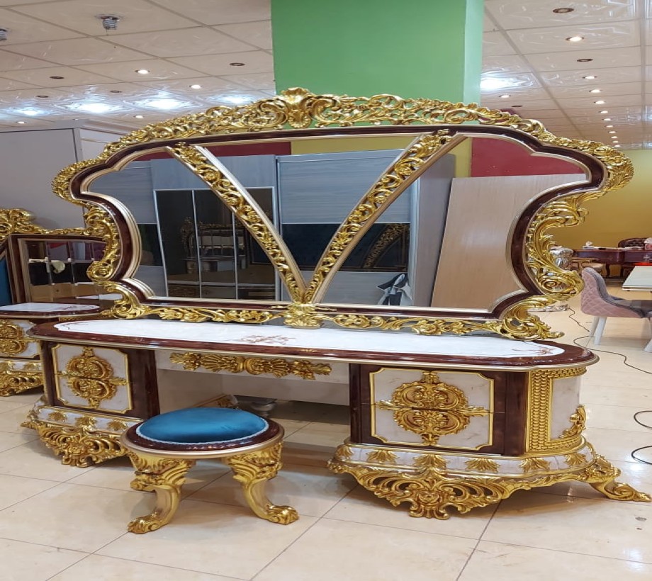 غرفة نوم مكونة من : سرير . دولاب . تسريحة . بف تسريحة . 2 كومود الغرفة مصنعه من خشب الزان الطبيعى بطابع كلاسيكى مميز