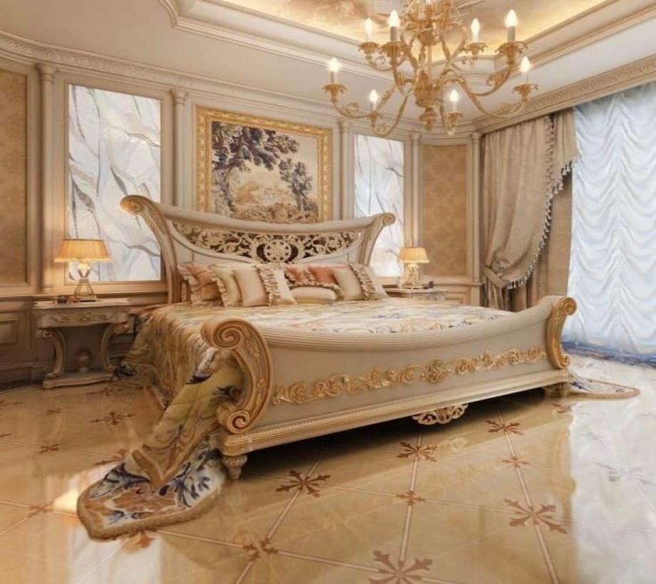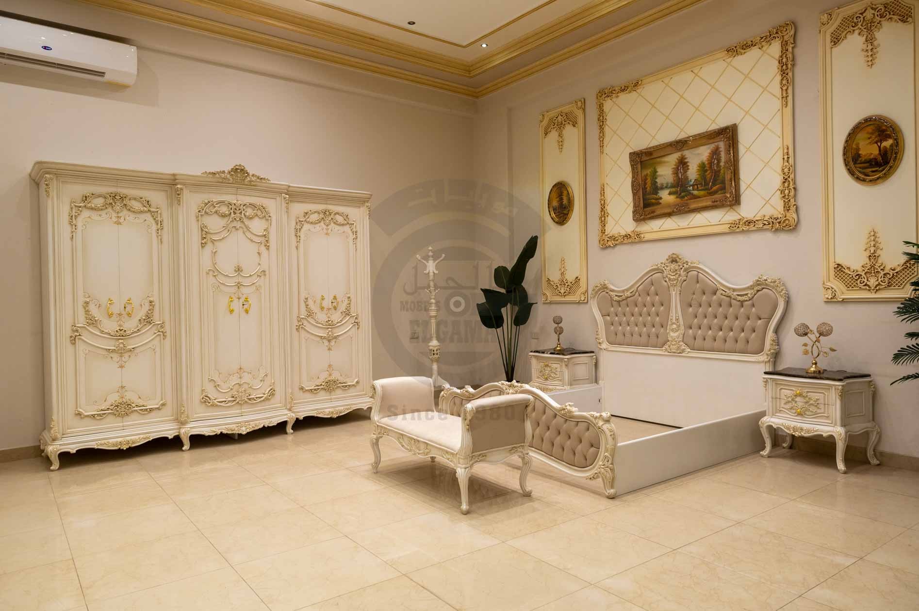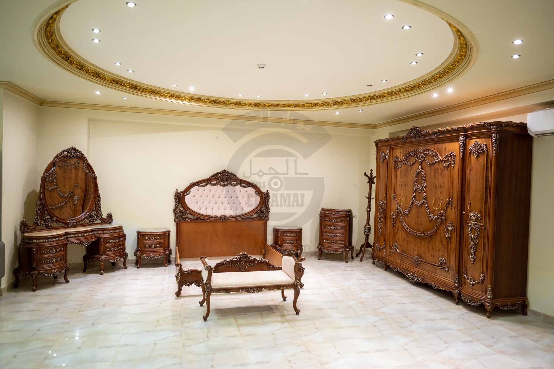 غرفة نوم مكونة من : سرير . دولاب . تسريحة . بف تسريحة . 2 كومود الغرفة مصنعه من خشب الزان الطبيعى بطابع كلاسيكى مميز