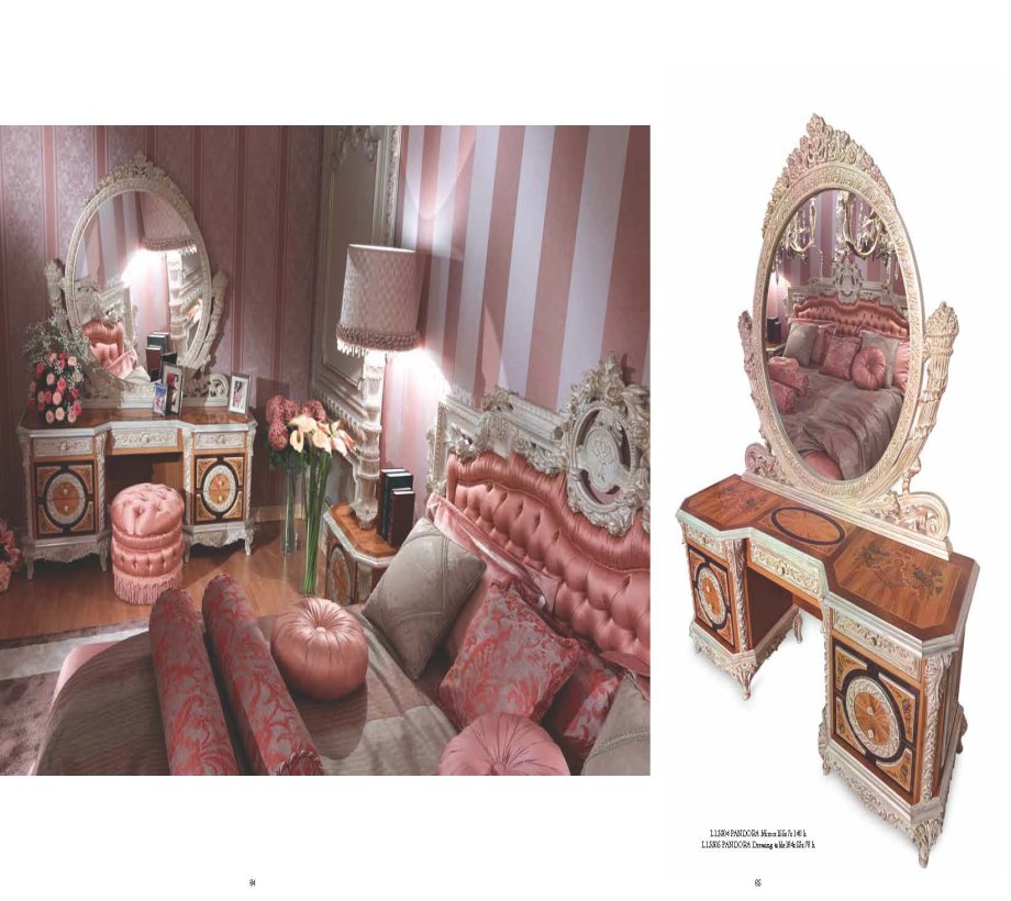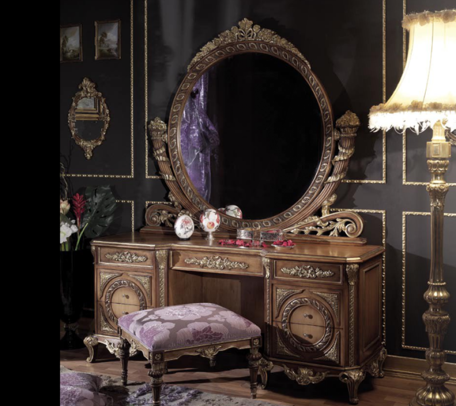 غرفة نوم مكونة من : سرير . دولاب . تسريحة . بف تسريحة . 2 كومود الغرفة مصنعه من خشب الزان الطبيعى بطابع كلاسيكى مميز