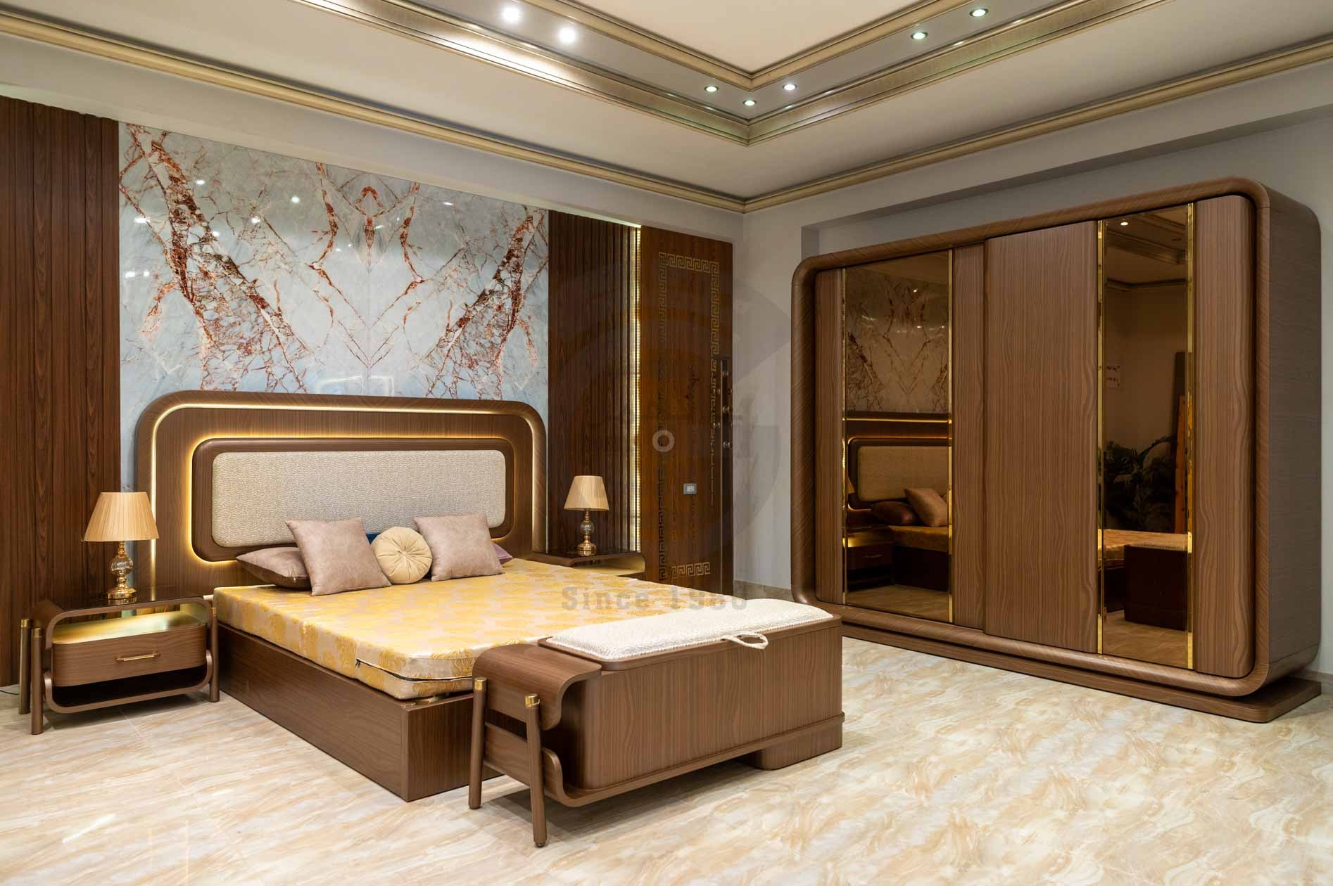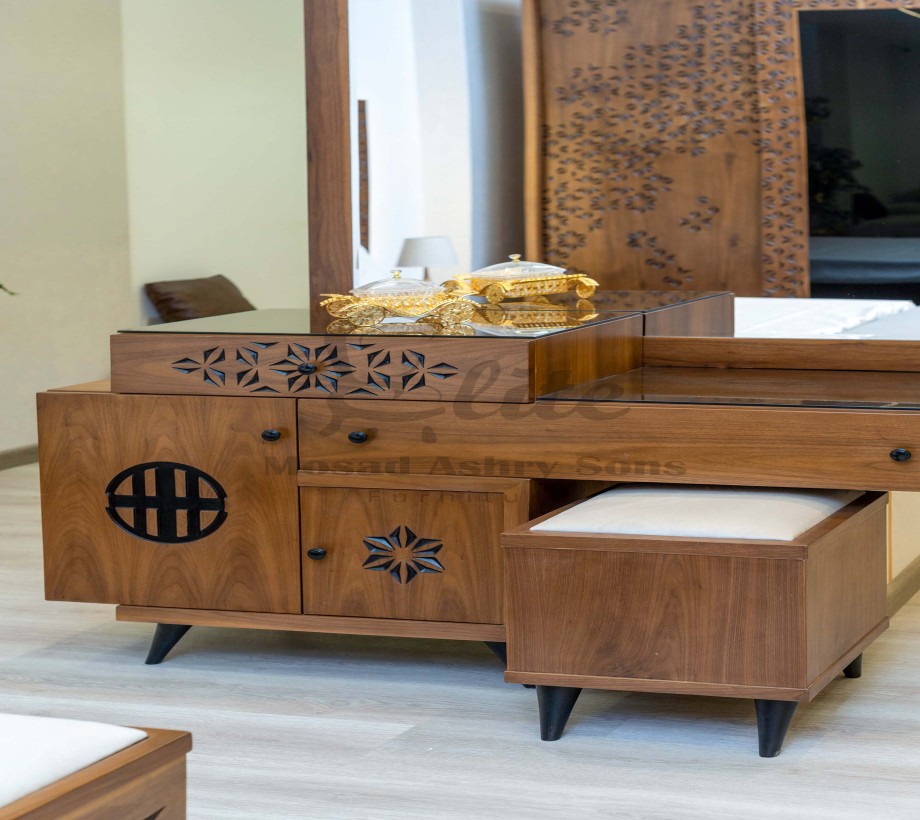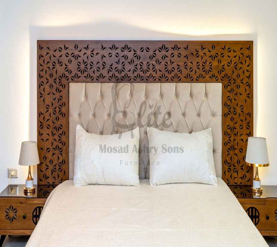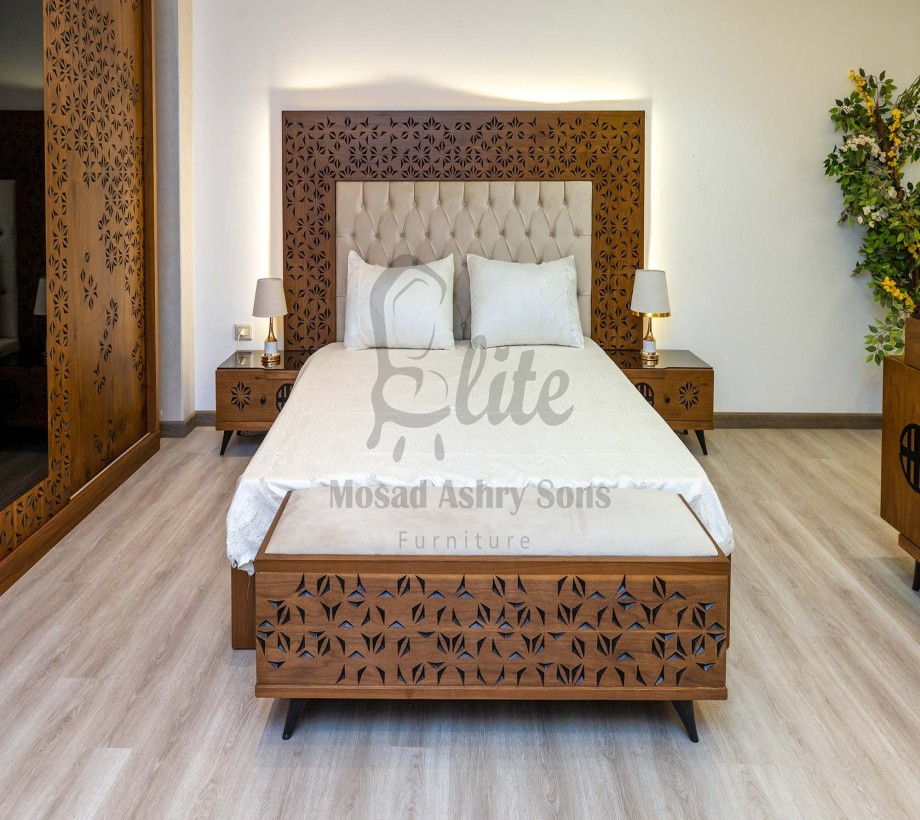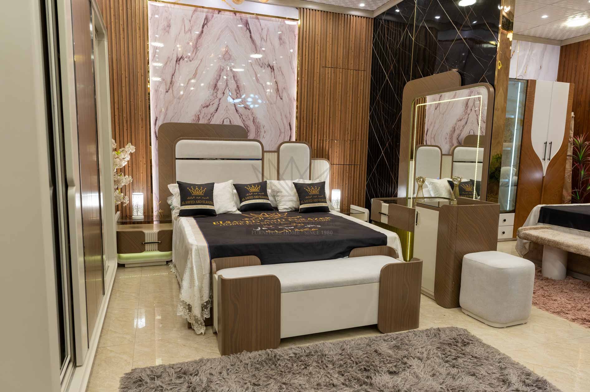 غرفة نوم مكونة : سرير. دولاب . 2 كومود . تسريحه . بف تسريحه . بانكيت الغرفة مصنوعه من خشب الزان الطبيعى بطابع عصرى مميز يليق بمنزلك