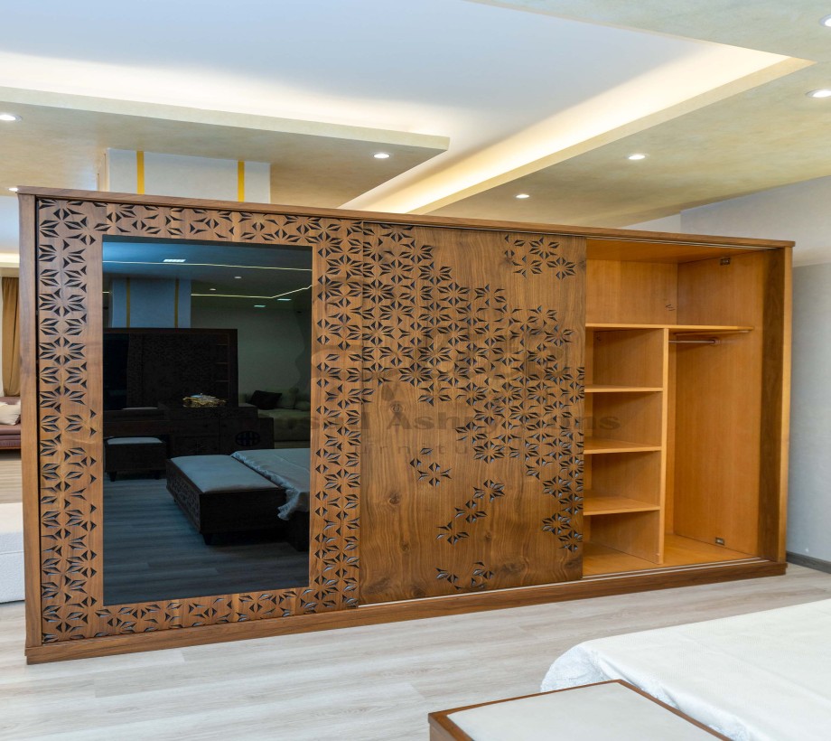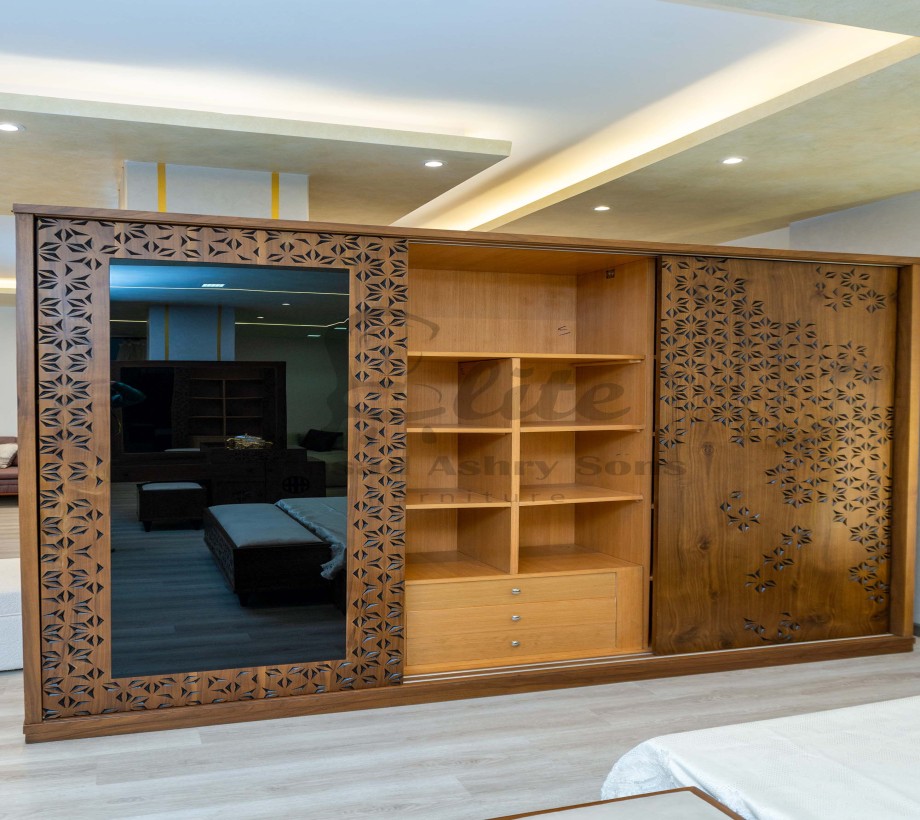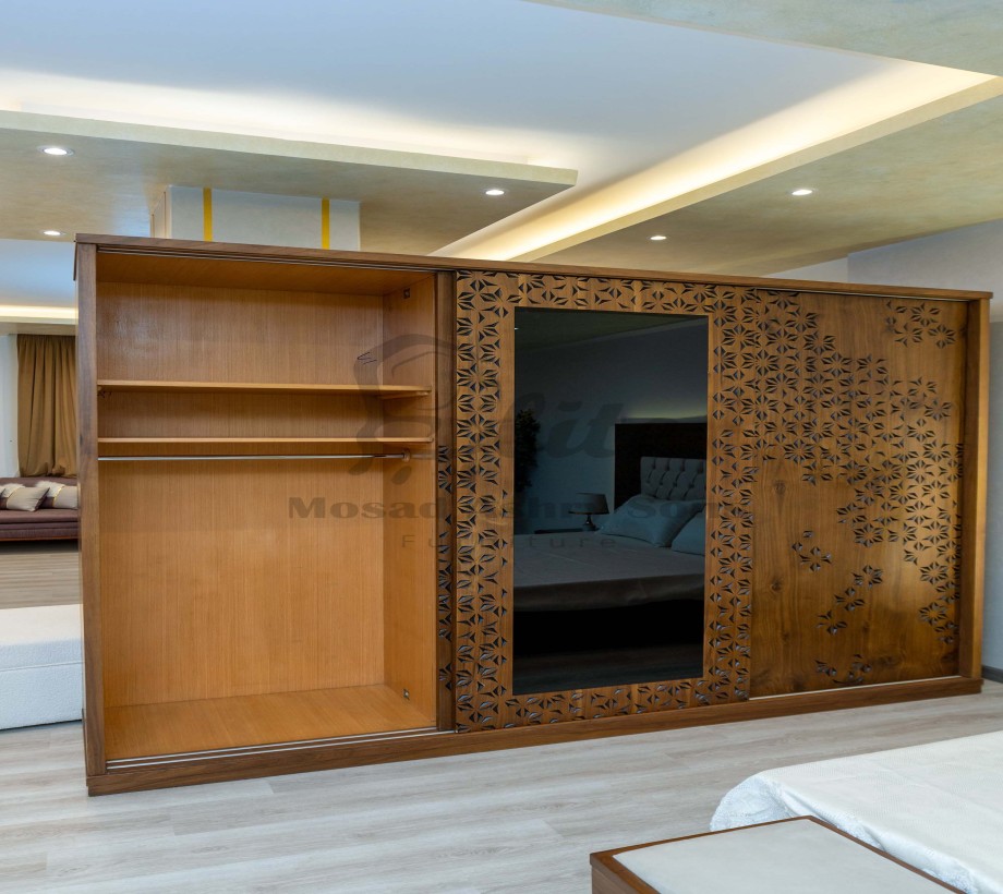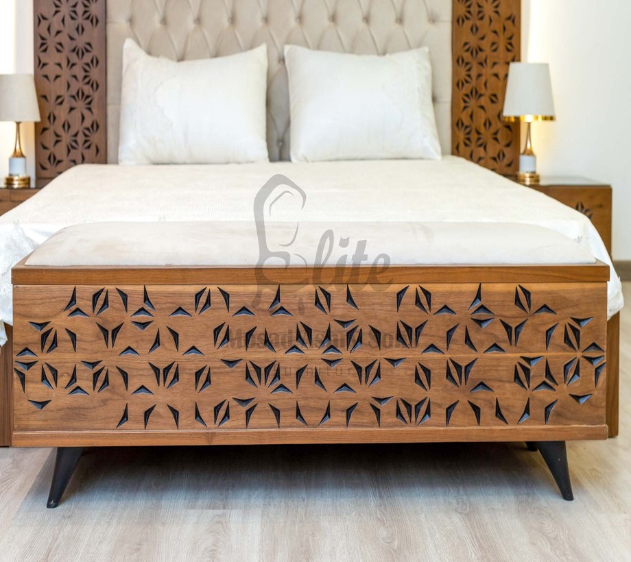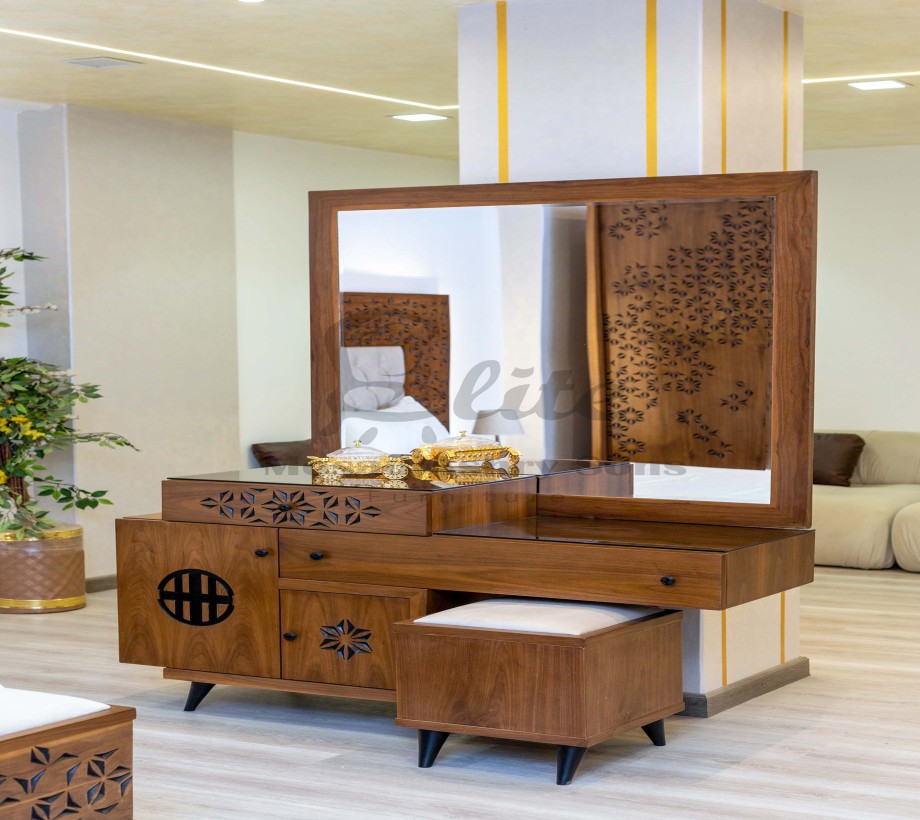 غرفة نوم مكونة : سرير. دولاب . 2 كومود . تسريحه . بف تسريحه . بانكيت الغرفة مصنوعه من خشب الزان الطبيعى بطابع عصرى مميز يليق بمنزلك