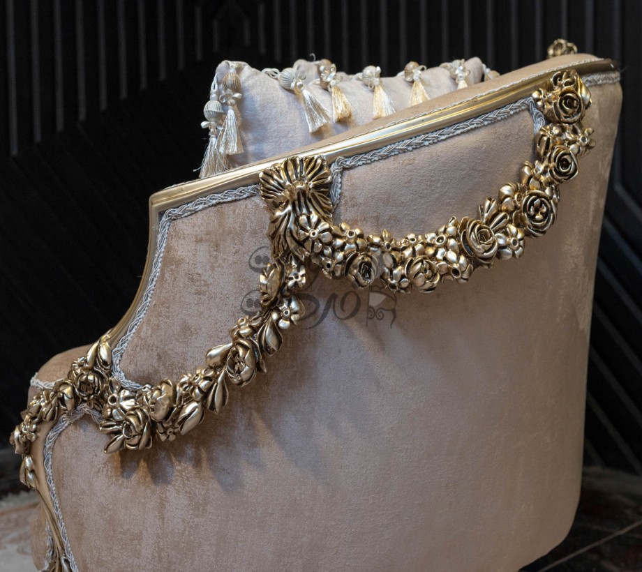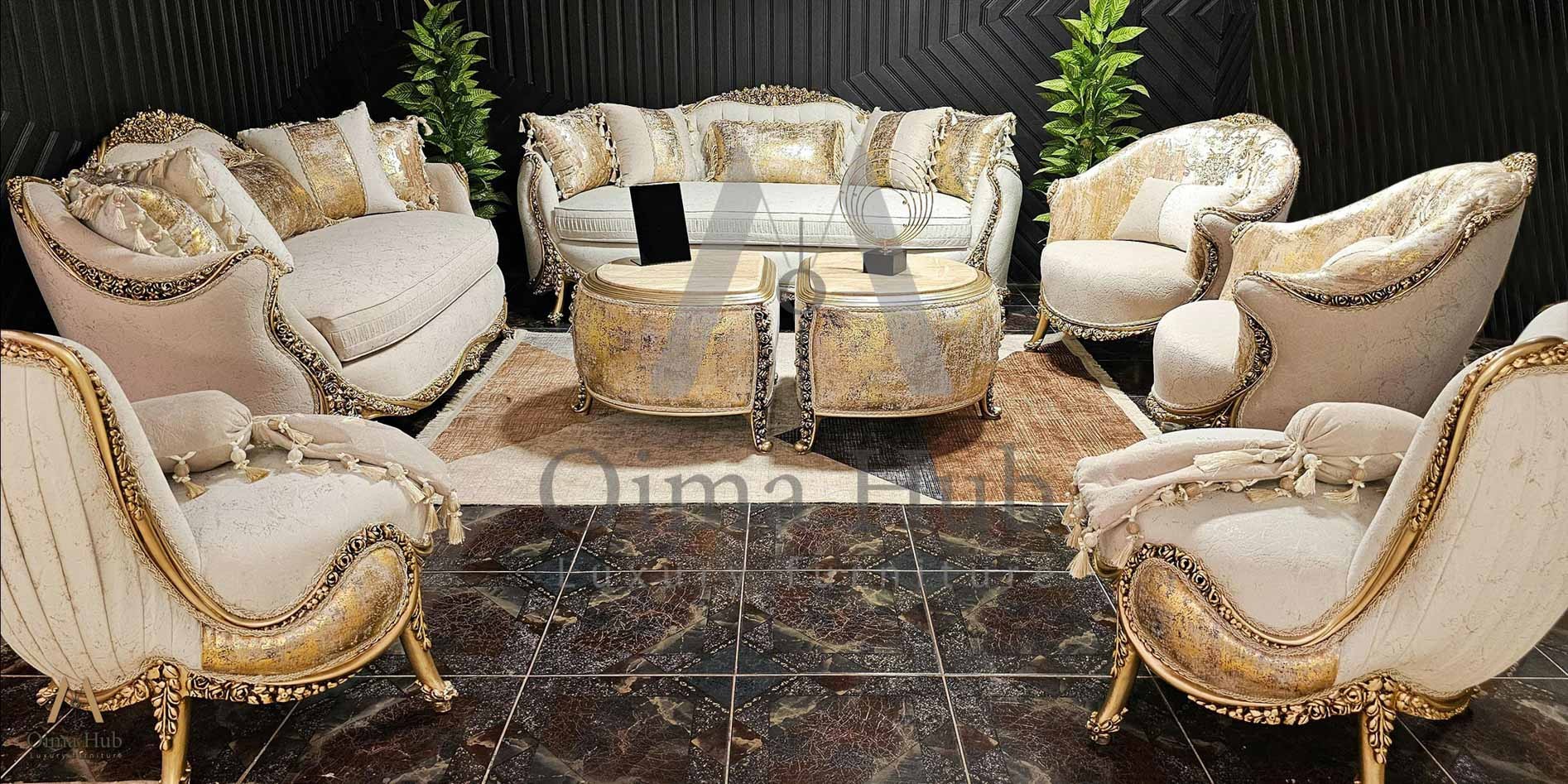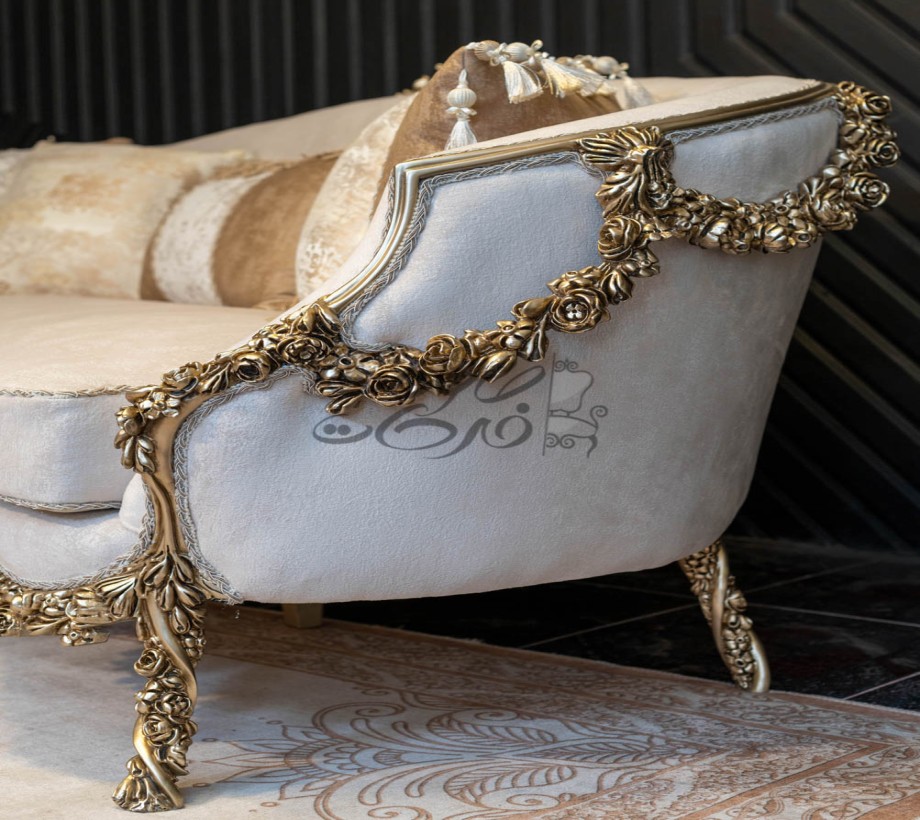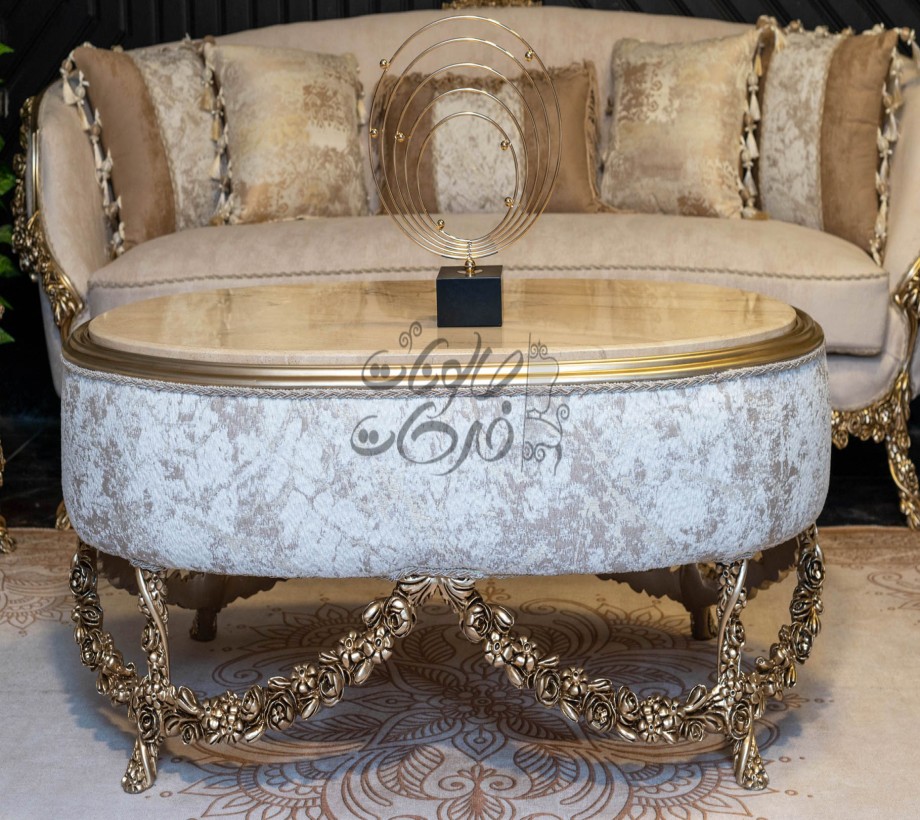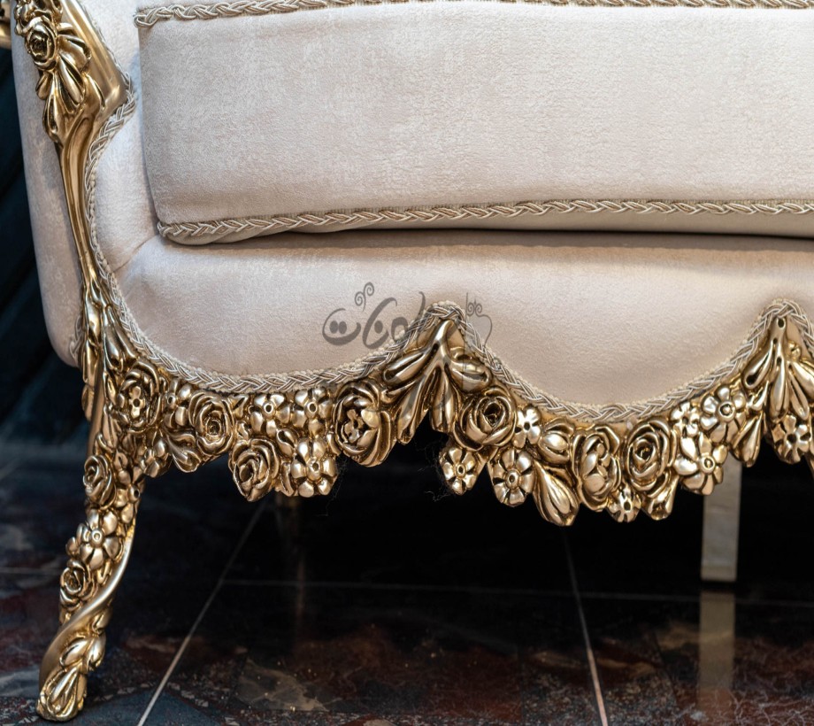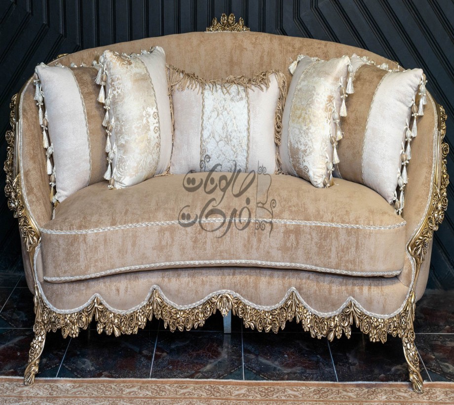 صالون مكون من : كنبه كبيرة . كنبة ثنائى . 2 فوتيه .بانكيت . ترابيزة رخام الصالون مصنوع من خشب الزان الطبيعى بطابع كلاسيكى مميز