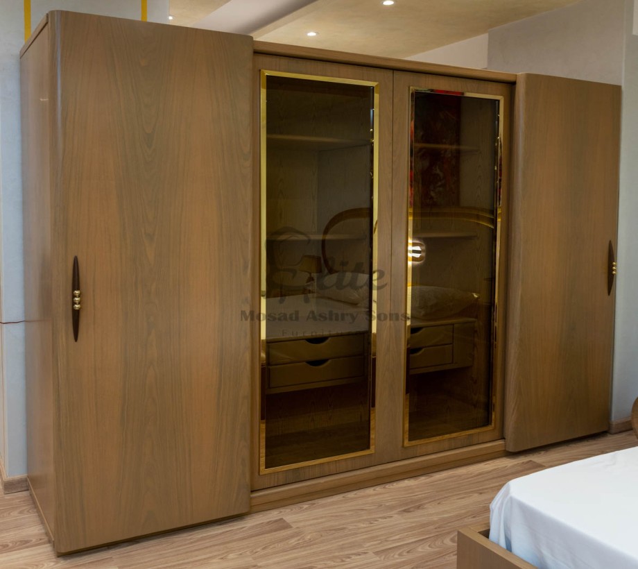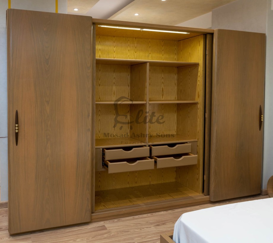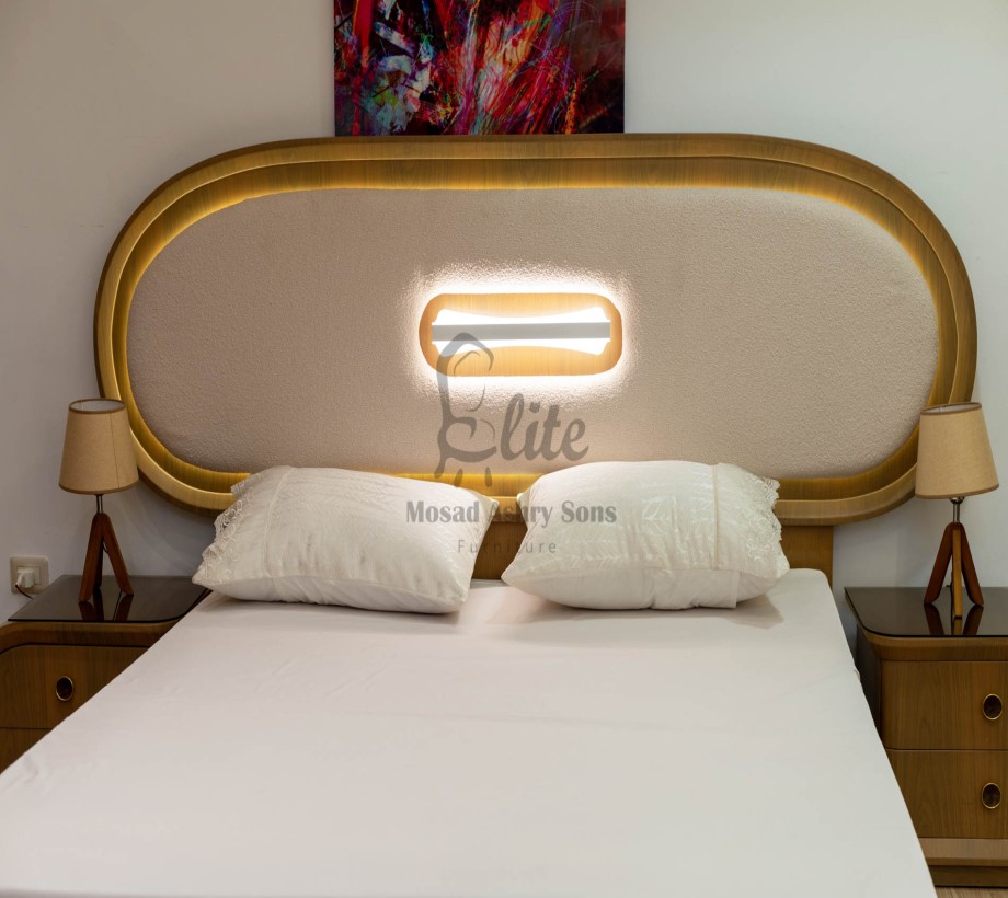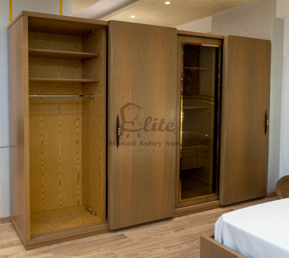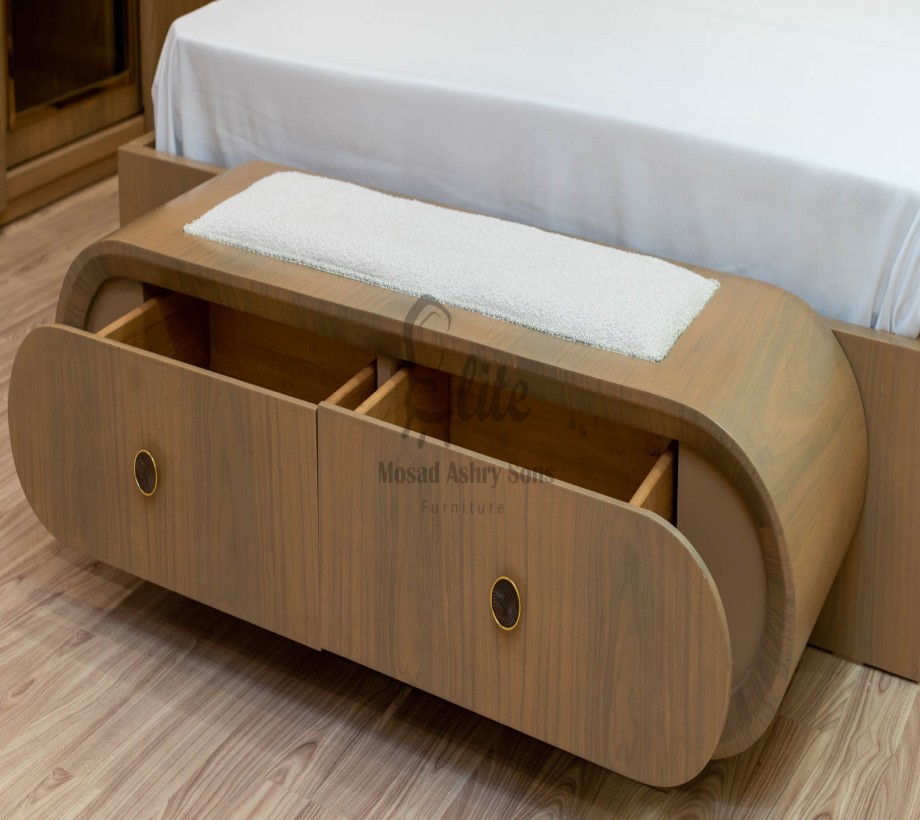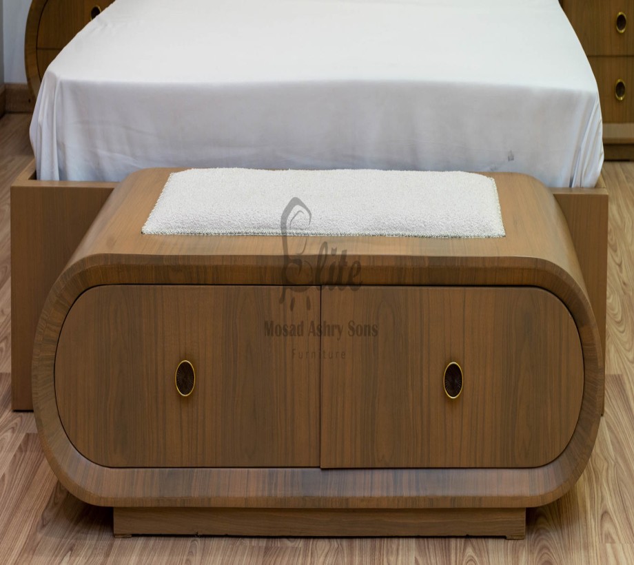 غرفة نوم مكونة من : سرير . دولاب تقسيم دريسينج . 2 كومود . تسريحه . بف تسريحة . بانكيت الغرفة مصنوعه من خشب الزان الطبيعى بطابع عصرى مميز يليق بمنزلك