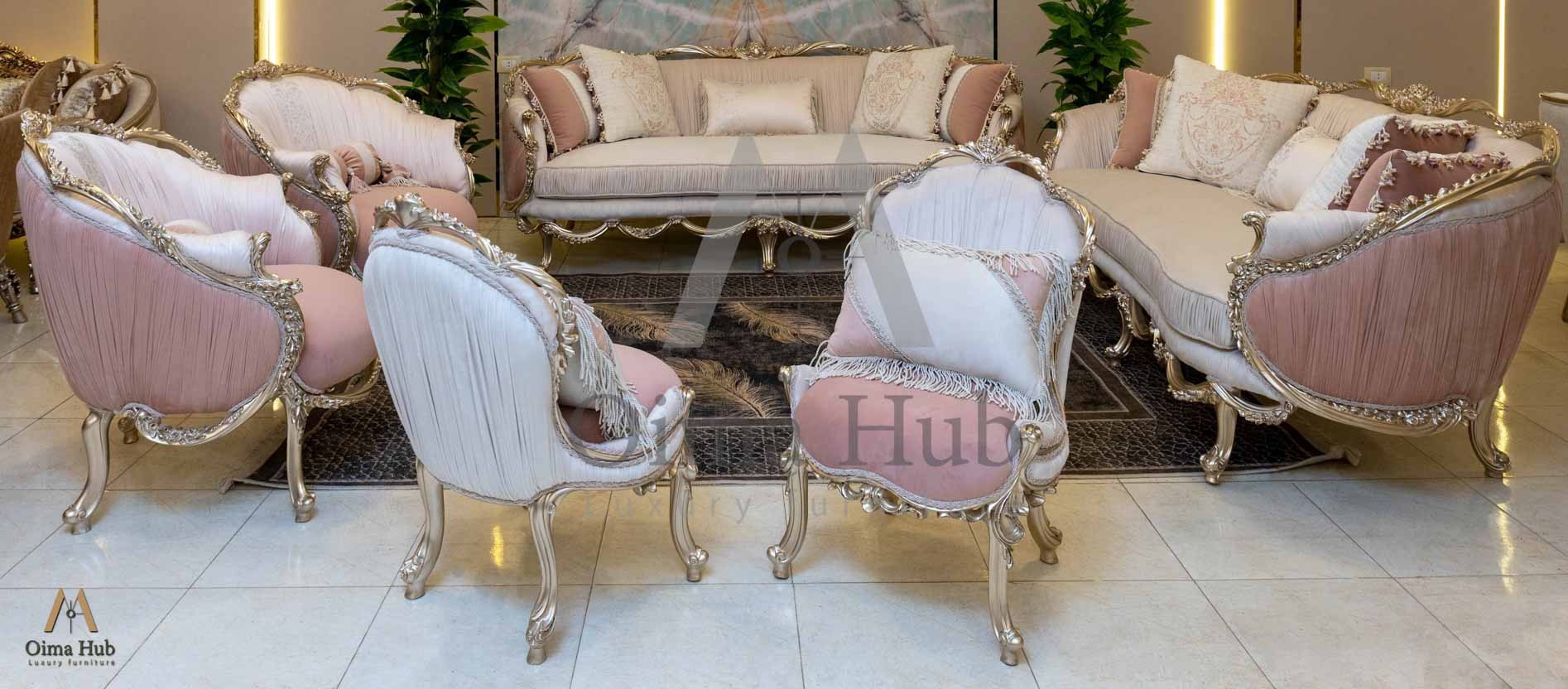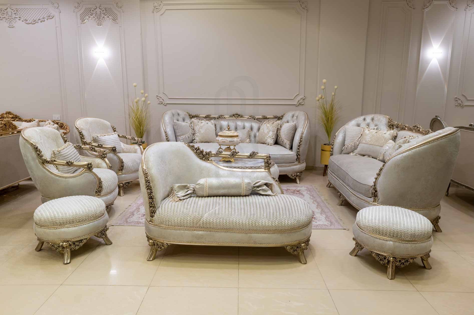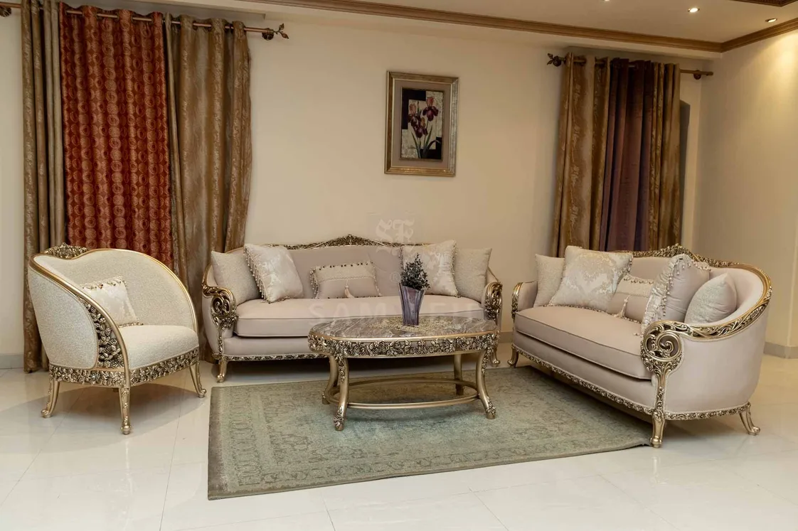 صالون مكون من : كنبه كبيره . كنبه ثنائى 2 مقعد . 2 فوتيه . ترابيزة رخام . الصالون مصنوع من خشب الزان الطبيعى بطابع عصرى مميز يليق بمنزلك