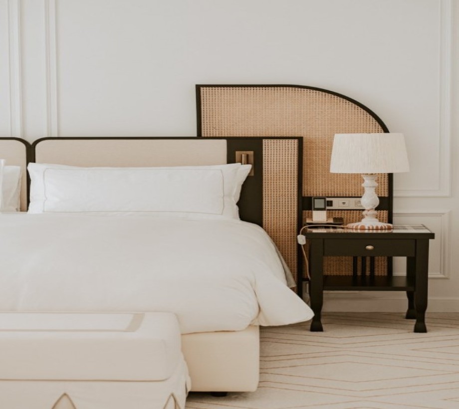 كما أن السرير مصنوع من الروطان والقاعدة الصلبة المصنوعة من الخشب الزان