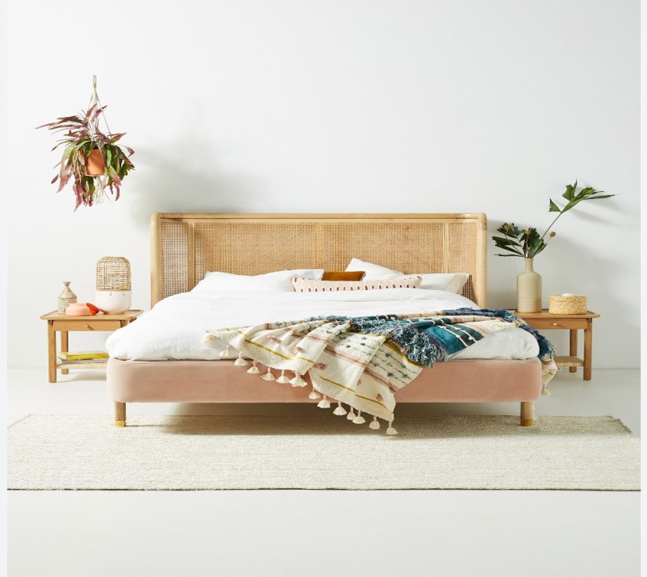 كما أن السرير مصنوع من الروطان والقاعدة الصلبة المصنوعة من الخشب الزان