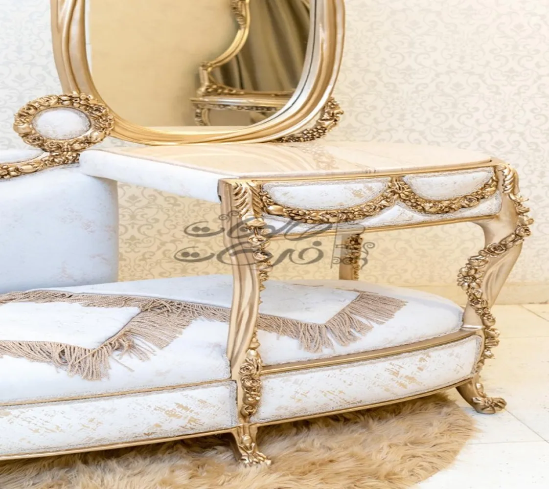 صالون مكون من : كنبه كبيرة . كنبة ثنائى . 2 فوتيه .كونسول كلاسيك . ترابيزة رخام الصالون مصنوع من خشب الزان الطبيعى بطابع كلاسيكى مميز