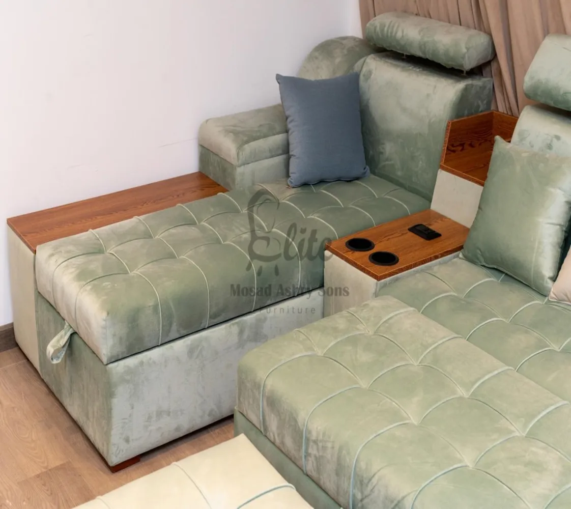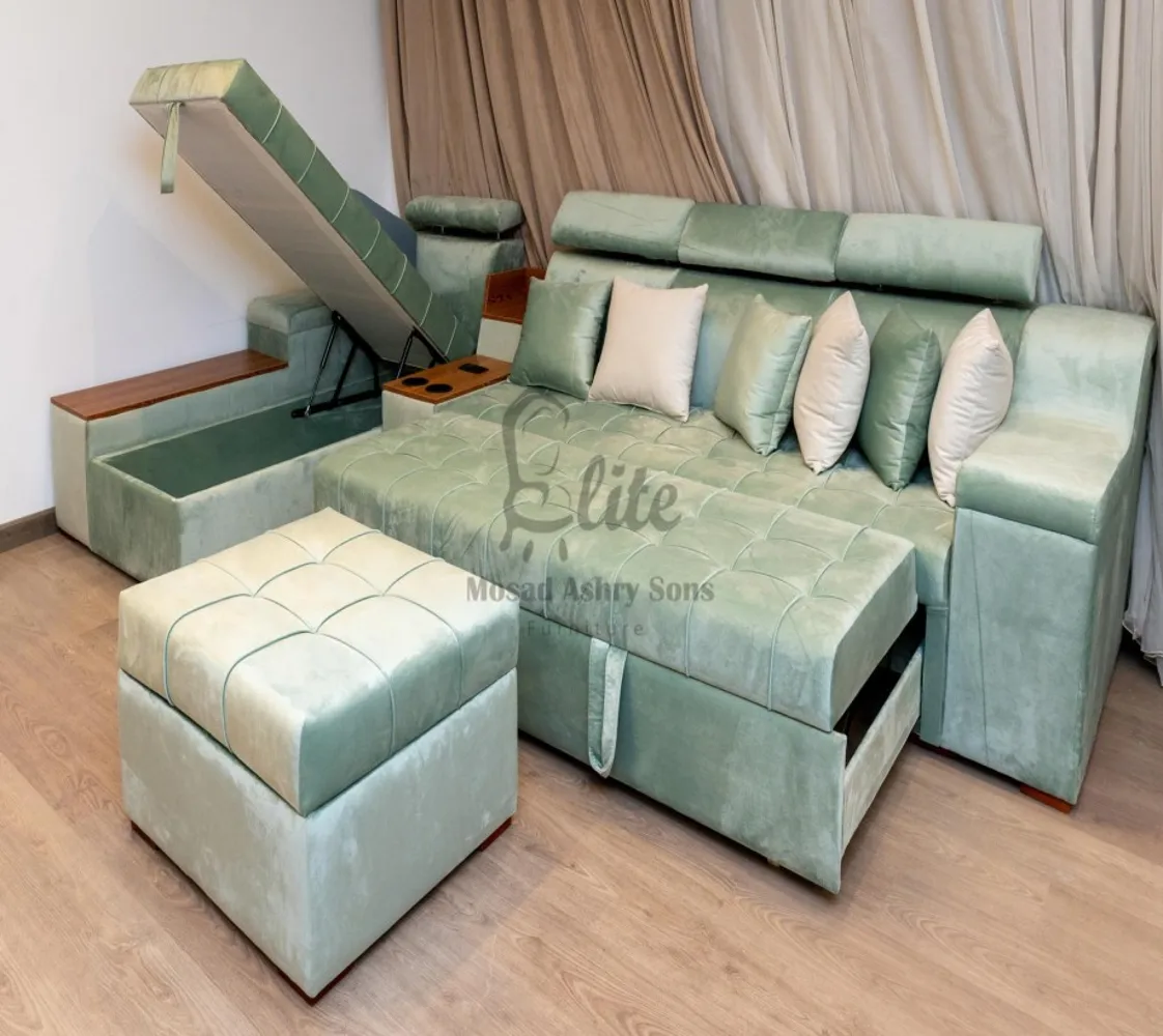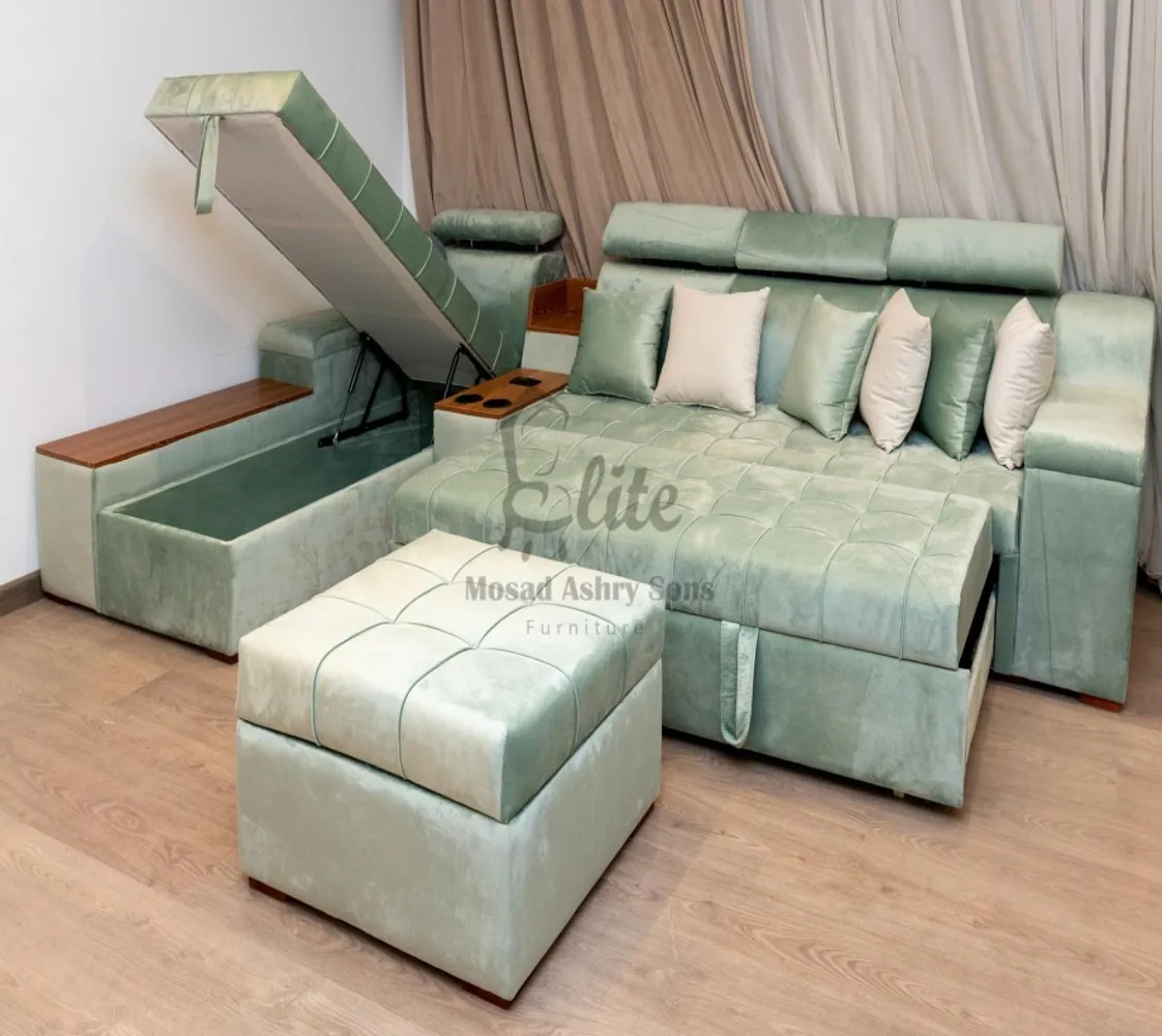 ركنة L-Shape مع بف الركنة مصنعه من خشب الزان الطبيعى بطابع عصرى مميز