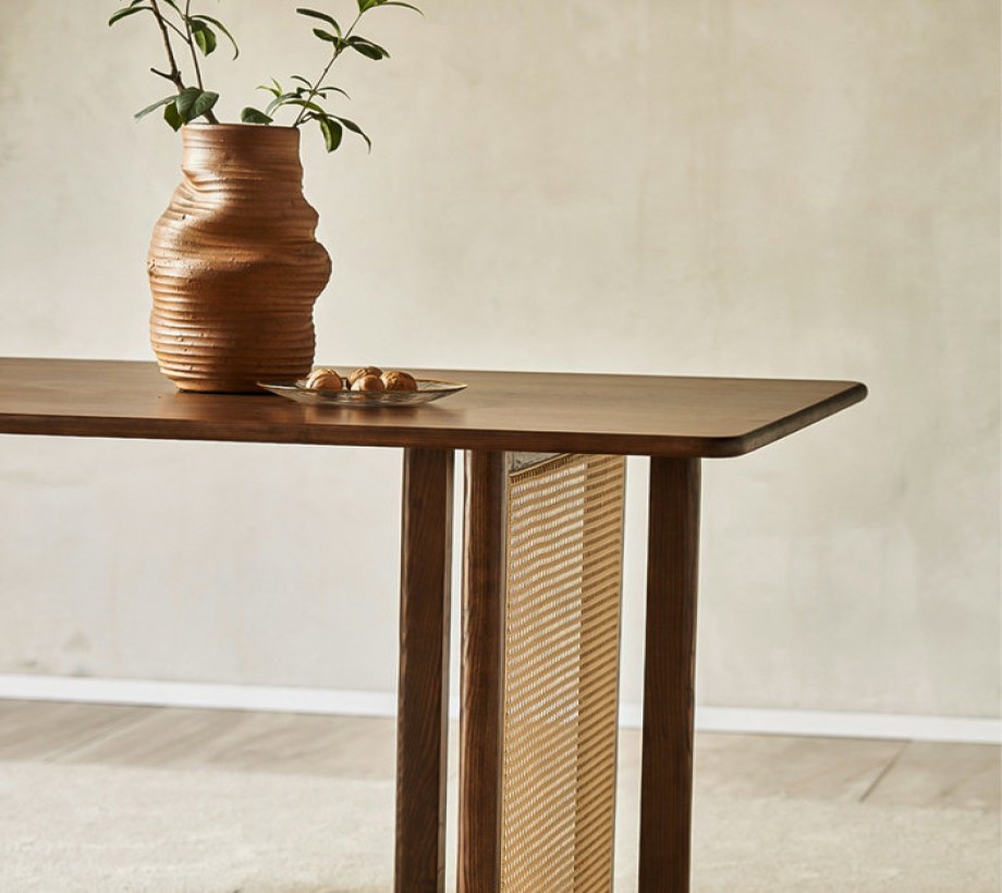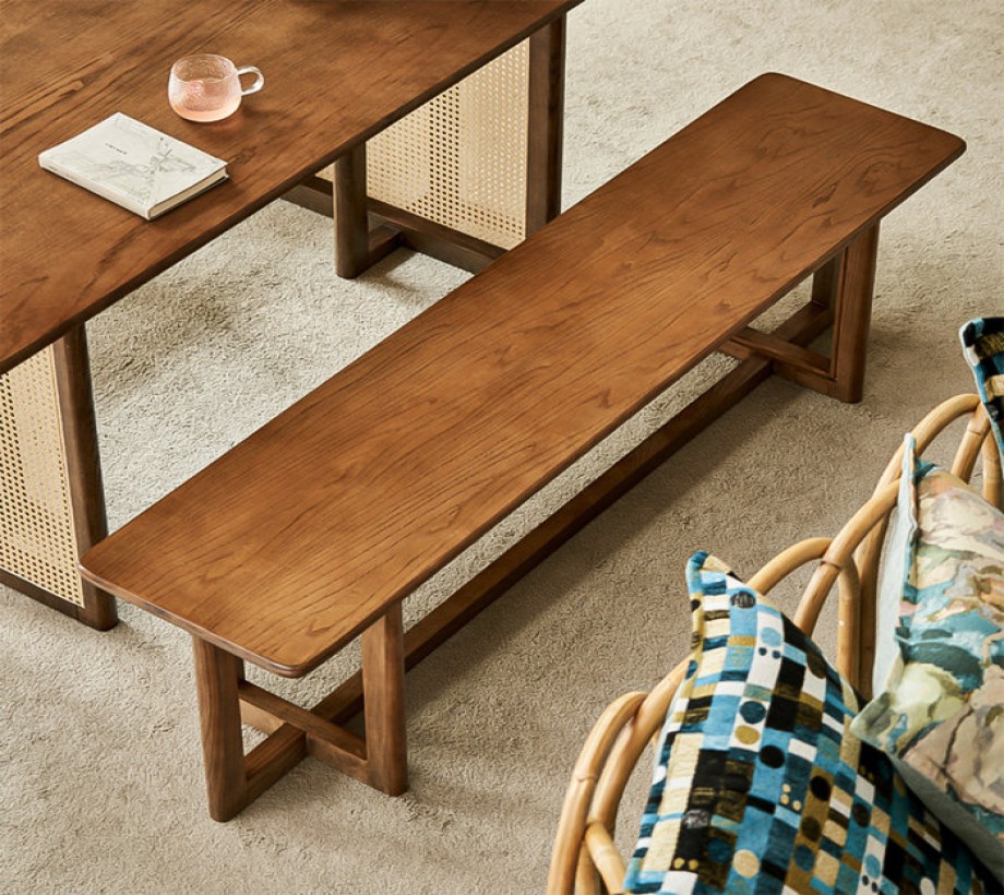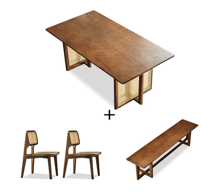 كما أن غرفة الطعام مصنوعة من الروطان والقاعدة الصلبة المصنوعة من الخشب الزان