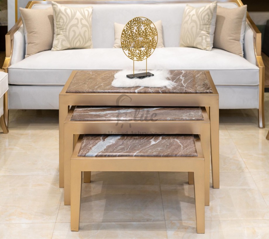 صالون مكون من :. كنبه كبيره 3 مقعد وكنبه صغيره 2 مقعد و 2 فوتيه وترابيزه رخام خشب زان احمر طبيعى الدهان شامبين باللون التركى
