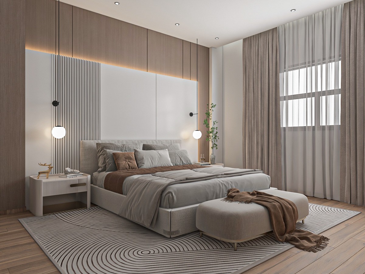 مكونة من سرير دولاب تسريحة مع 2 كمود غرفة مصنعة من الخشب الطبيعى بطابع عصرى
