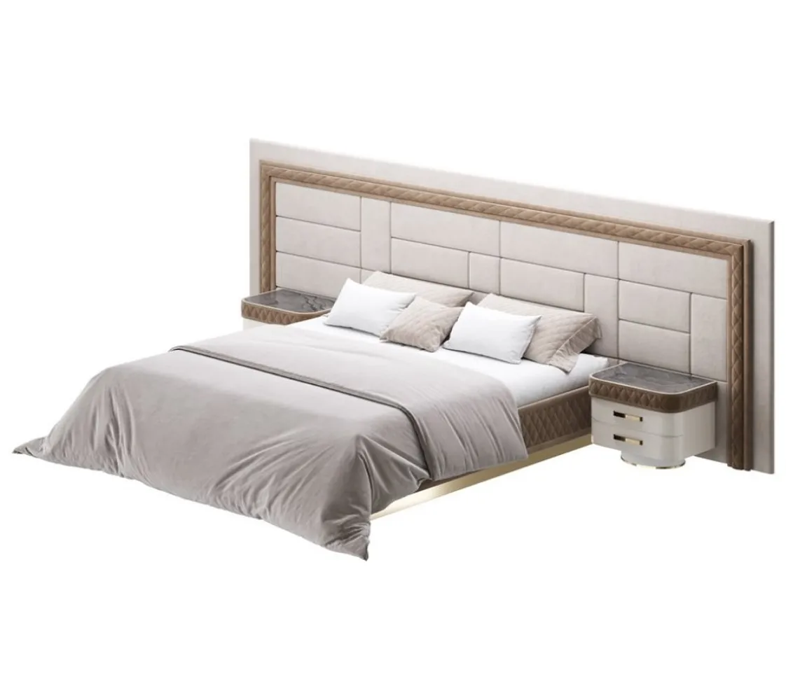سريرمودرن بتصميم عصري اللون : دهبى فاتح - رمادى فاتح المقاس : ارتفاع 127 سم *عمق 198 سم *عرض320 سم