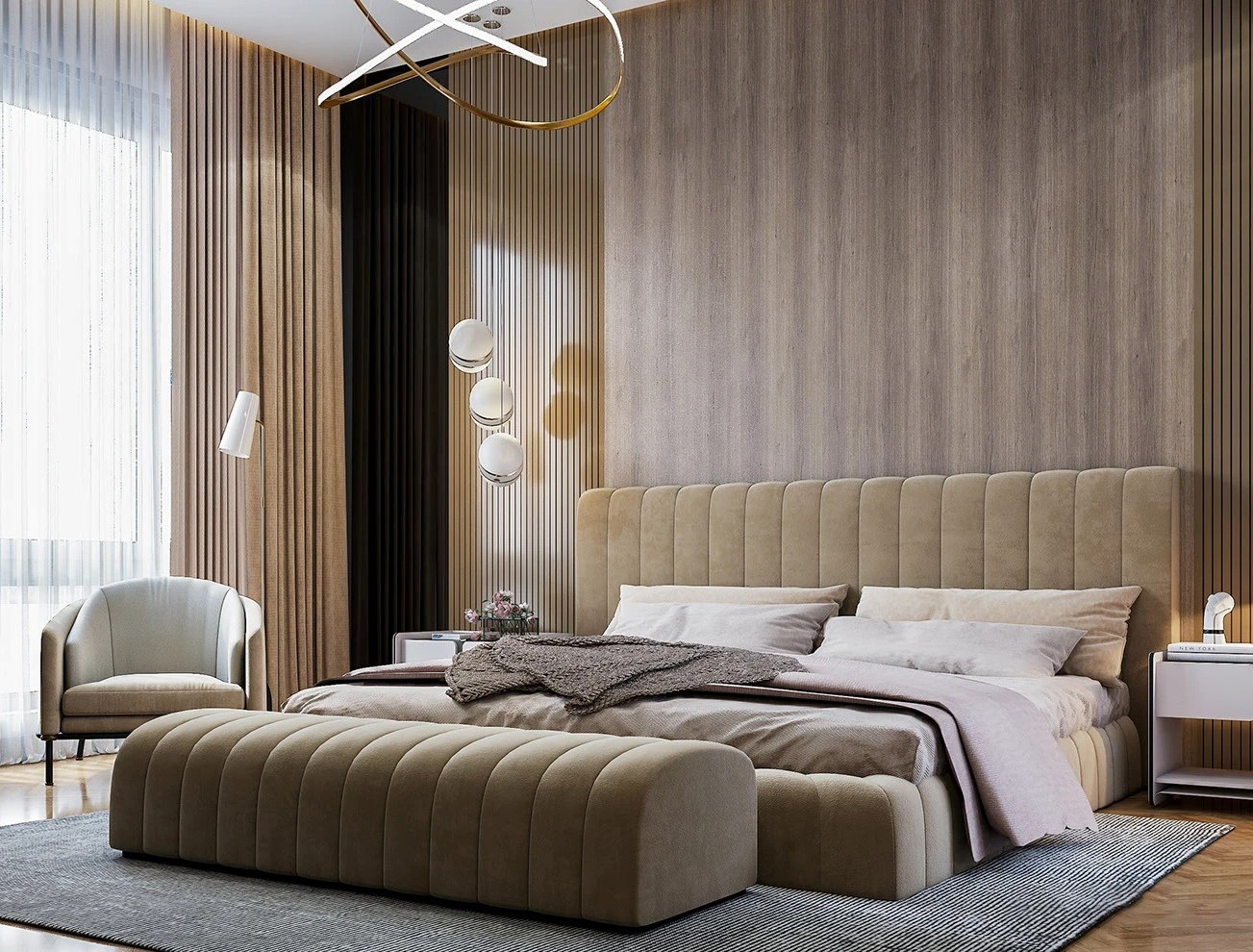 سريرمودرن بتصميم عصري اللون : خشبى - رمادى غامق المقاس : ارتفاع 140 سم *عمق 200 سم *عرض 120 سم الخامات : خشب طبيعى