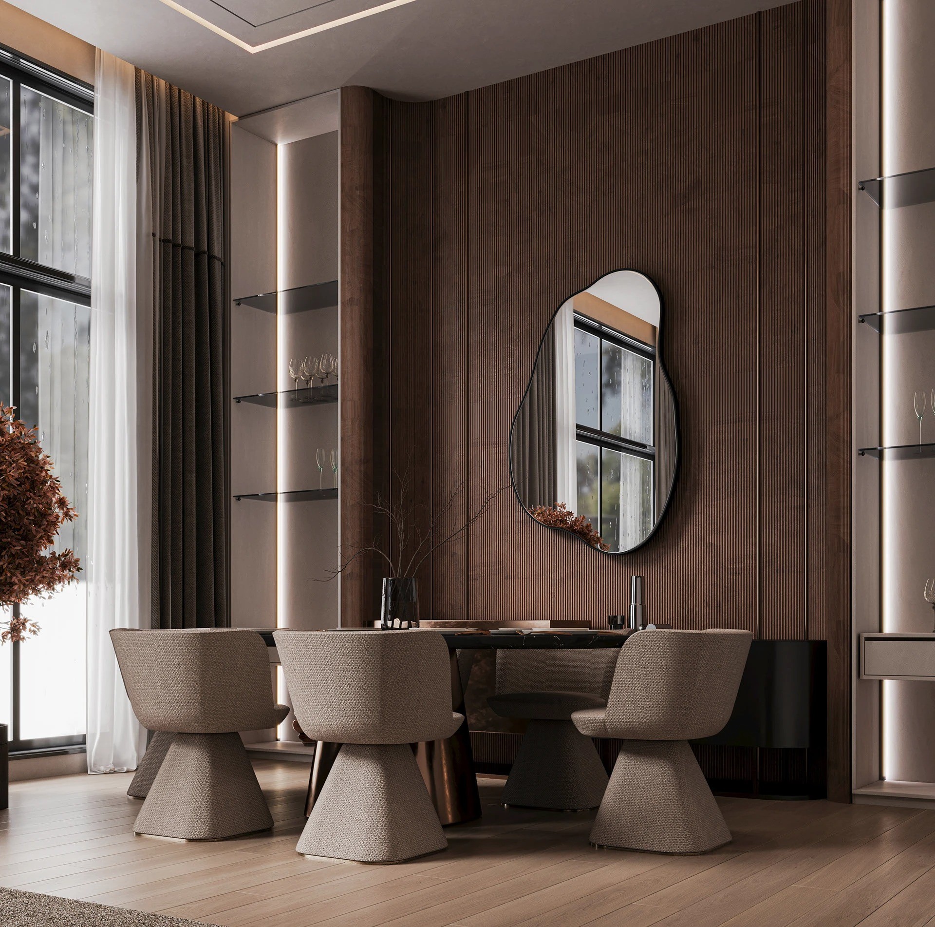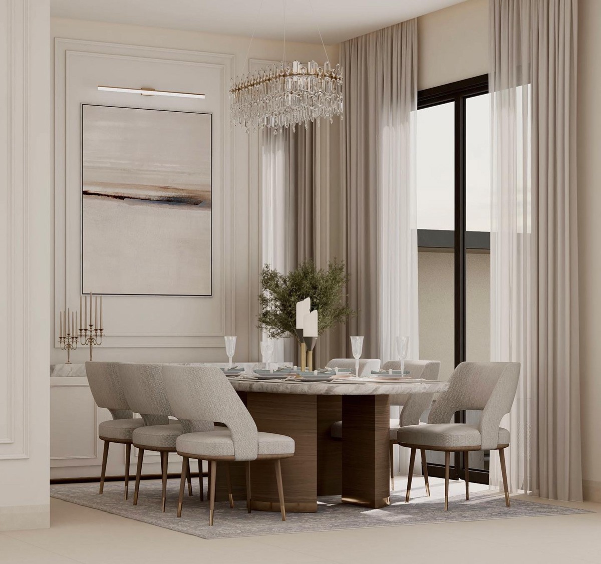 غرفة طعام مكونة من : ترابيزة + 6 كراسى اللون : خشبى الخامة : خشب طبيعى + قماش الكتان عالى الجودة