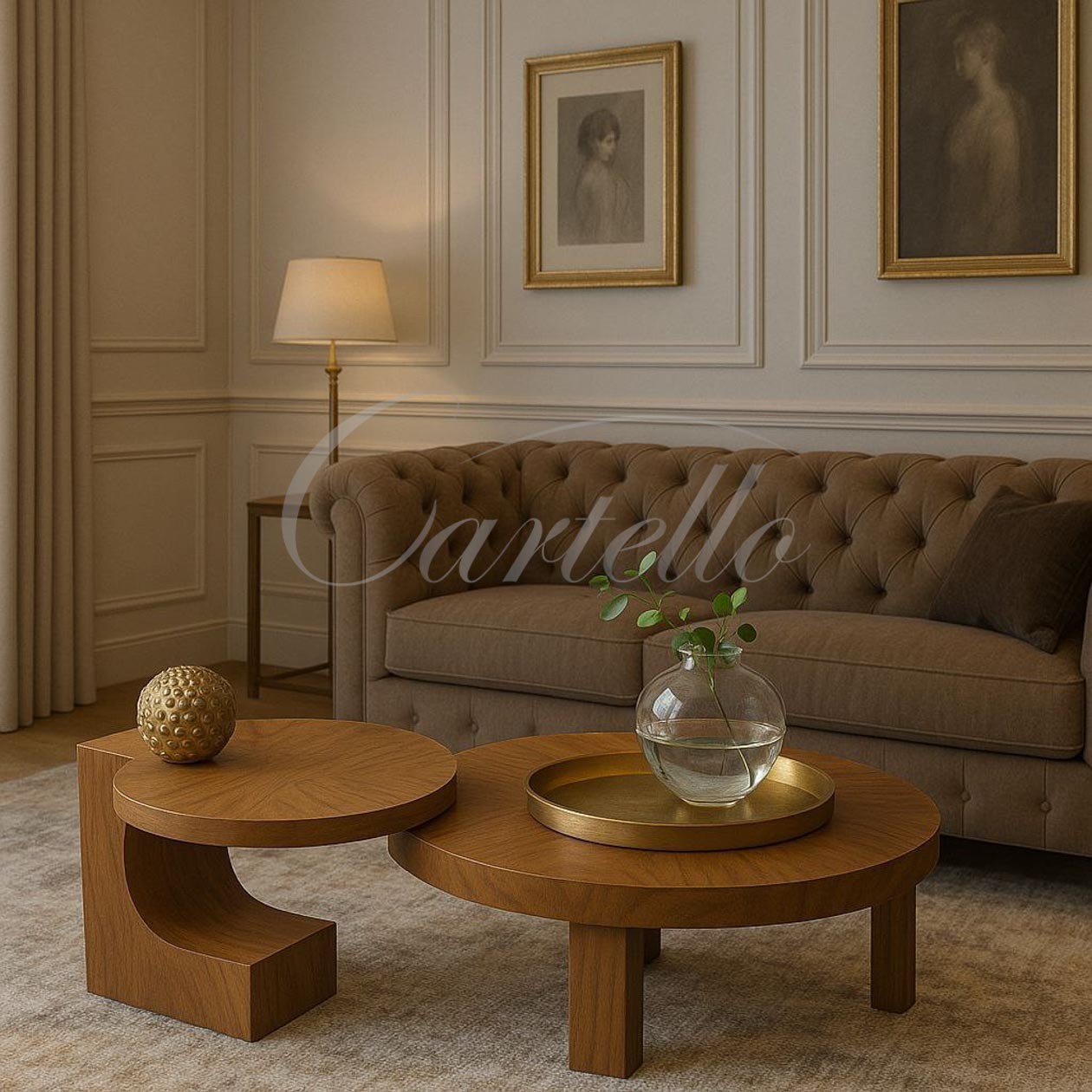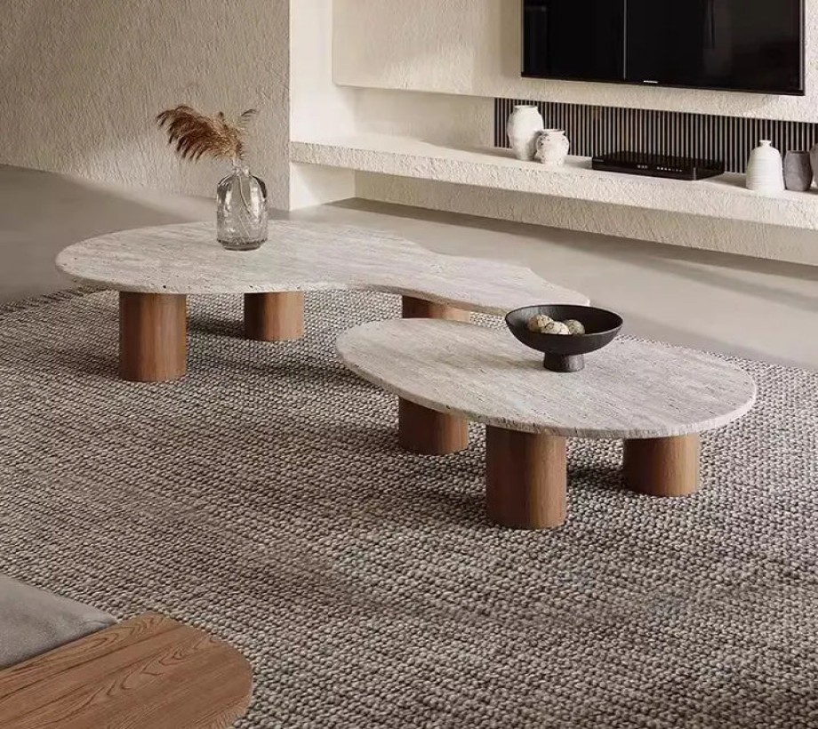 طاولة قهوة عصرية بتصميم أنيق، مصنوعة من خشب بديل الرخام وخشب الزان بألوان بني وأبيض داكن، تضيف لمسة أنيقة لأي مساحة. تتكون من قطعتين: طاولة كبيرة وأخرى صغيرة