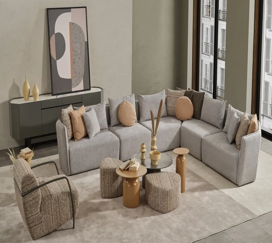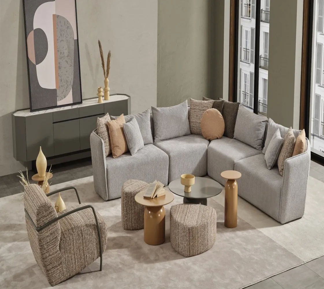 ركنة مودرن من خشب الزان الطبيعى مع ترابيزه خشب طبيعى وفوتيه الركنة مصنعه بطابع عصرى مميز