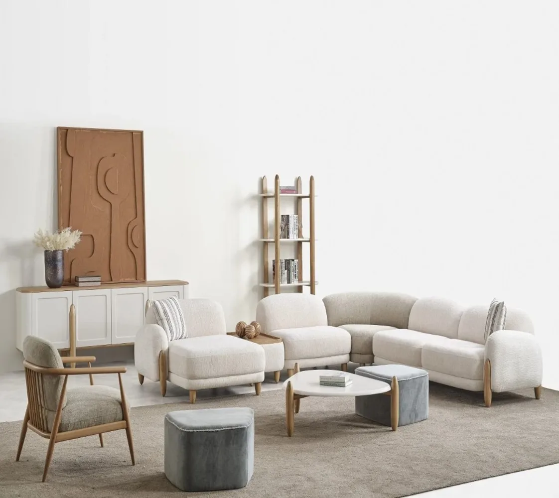 ركنة مودرن من خشب الزان الطبيعى مع ترابيزه خشب طبيعى وفوتيه الركنة مصنعه بطابع عصرى مميز