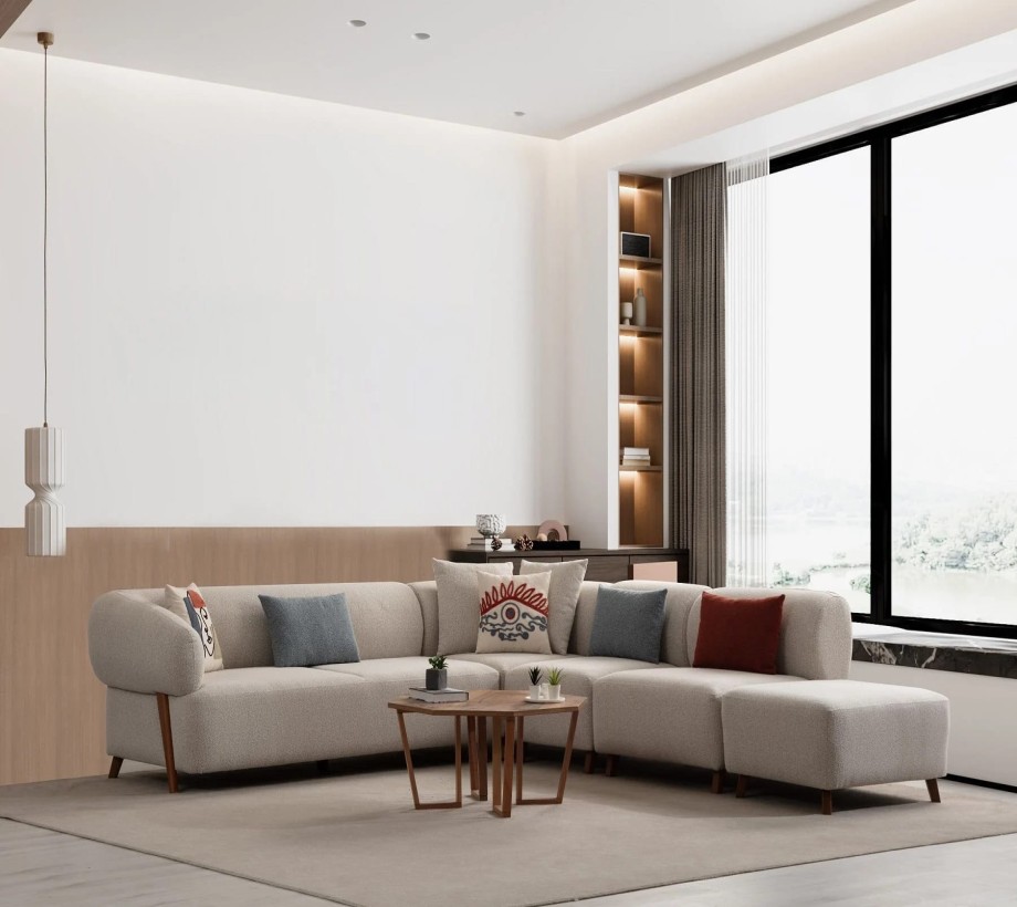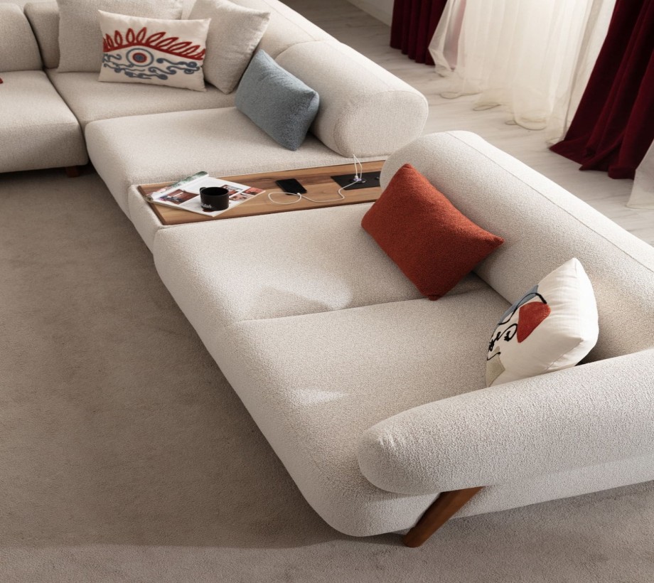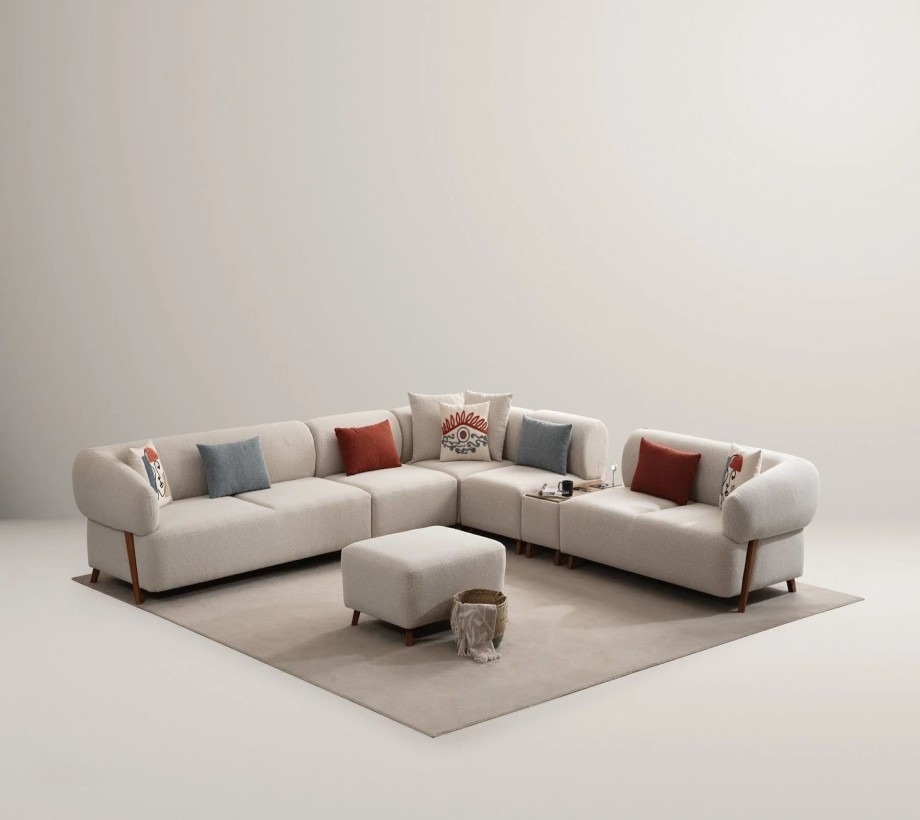ركنة مودرن من خشب الزان الطبيعى مع ترابيزه خشب طبيعى وفوتيه الركنة مصنعه بطابع عصرى مميز