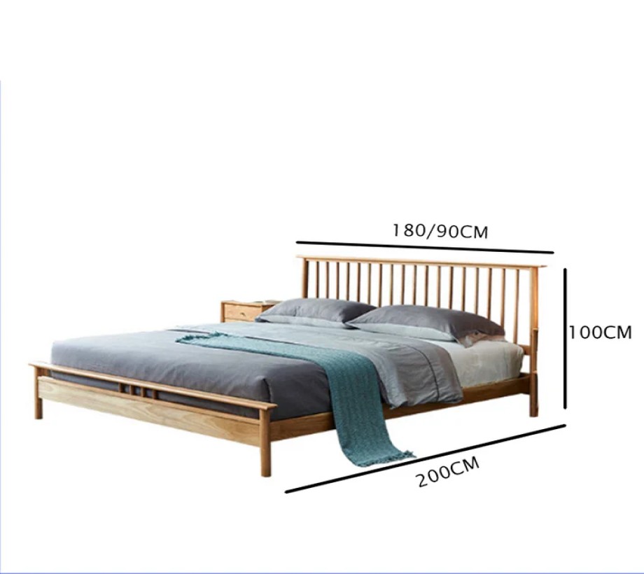 سرير خشبي من خشب الزان الطبيعي بلون خشبي فاتح. يجمع بين الأناقة والعصرية، ما يجعله مثاليًا لإضفاء لمسة راقية على غرفة النوم.