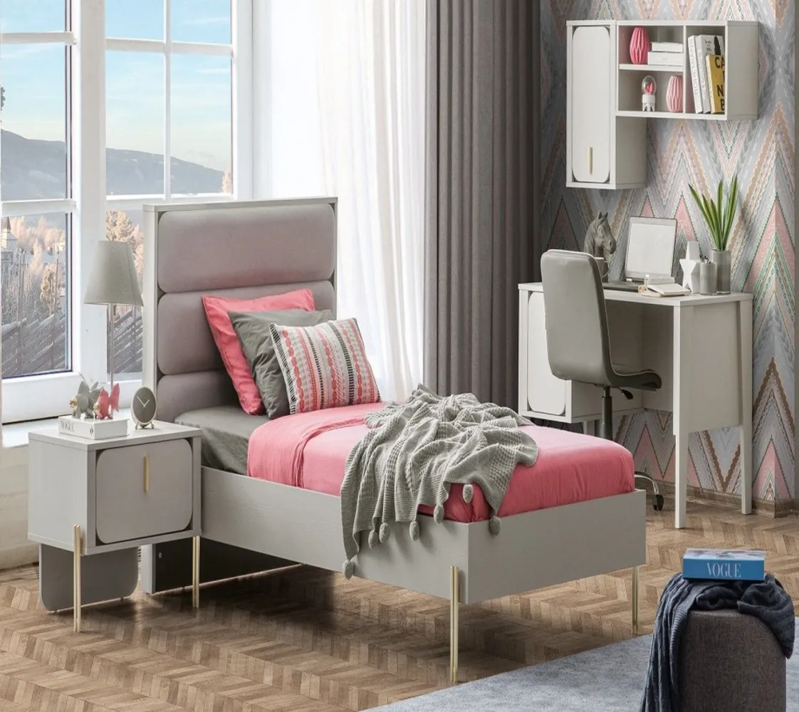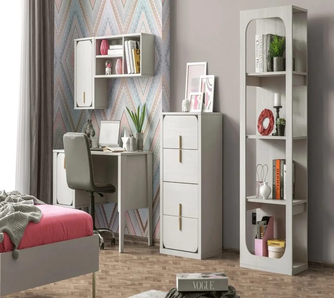 مكونة من سرير ودولاب ومكتب وكيمود ووحدة ادراج مصنوع من خامات ذات جودة عالية مثل الحشب الزان والخشب طبيعي