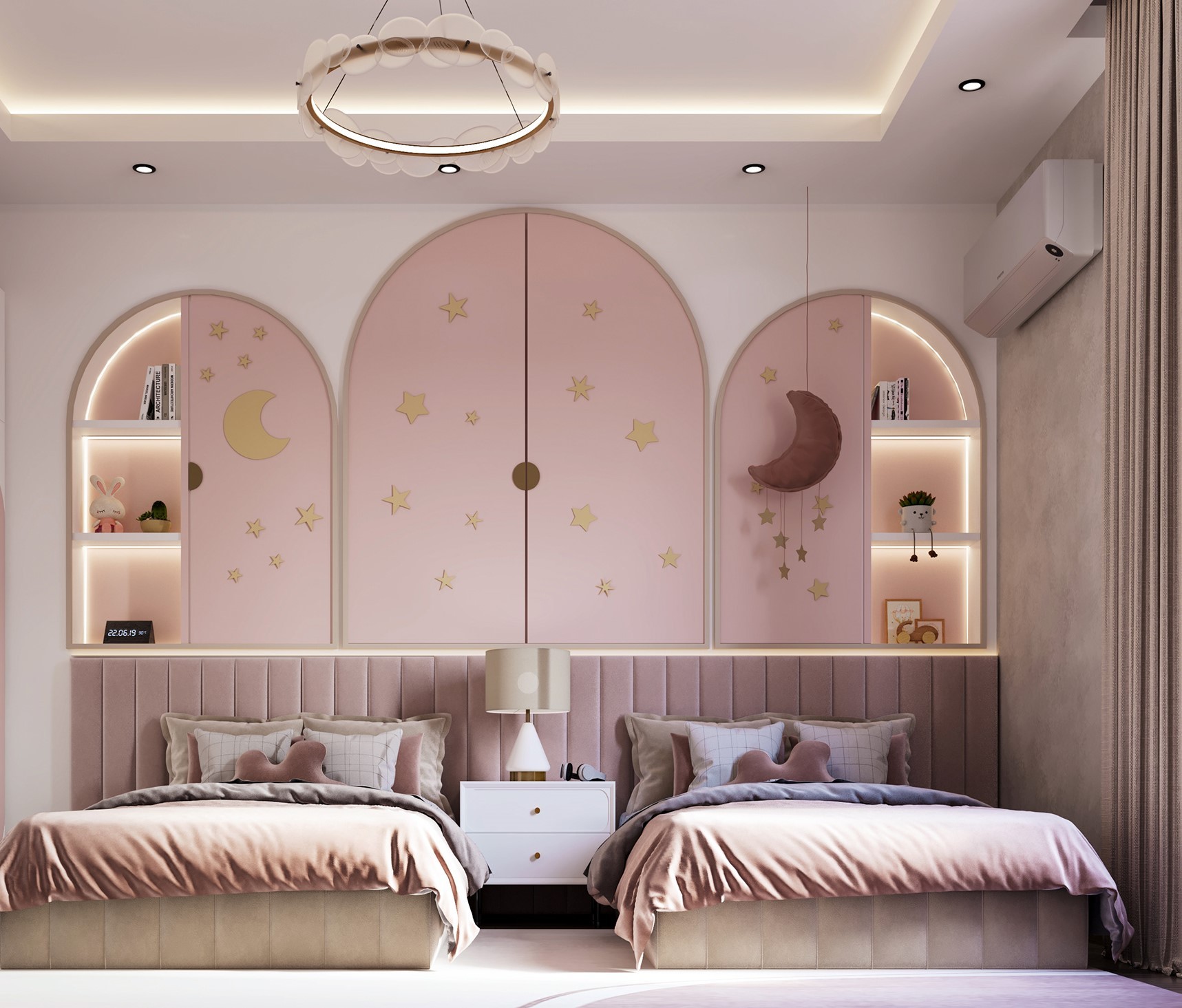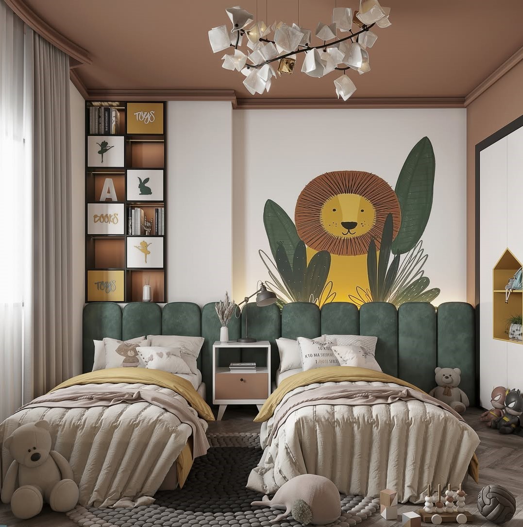 مكونة من سرير ودولاب ومكتب وكيمود ووحدة ادراج مصنوع من خامات ذات جودة عالية مثل الحشب الزان والخشب طبيعي