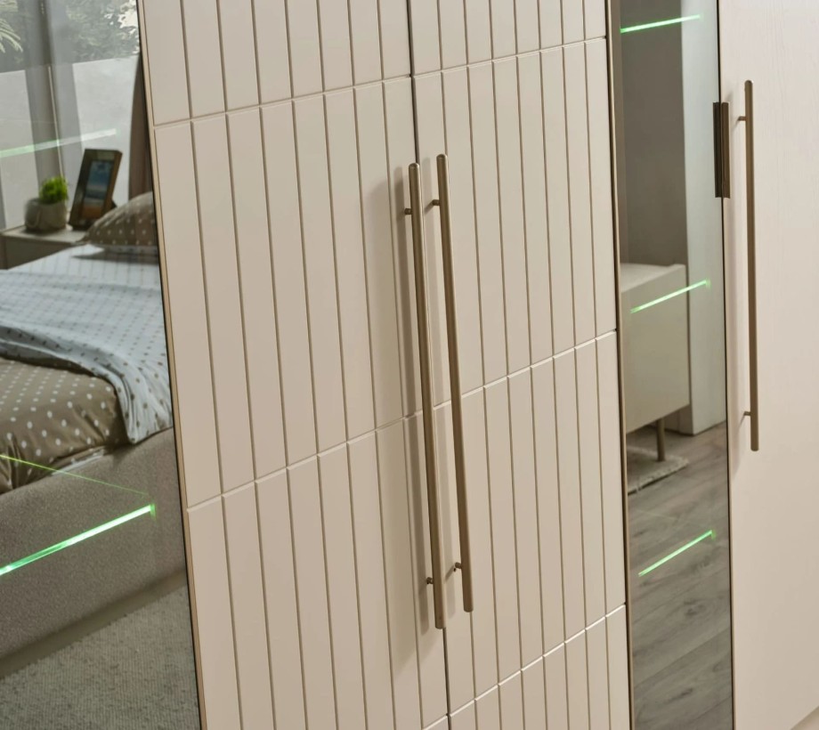 غرفة نوم مودرن مكونة من سرير ودولاب و2 كيمود وتسريحة ووبف تسريحةمصنوع من خامات ذات جودة عالية مثل الحشب الزان والخشب طبيعي