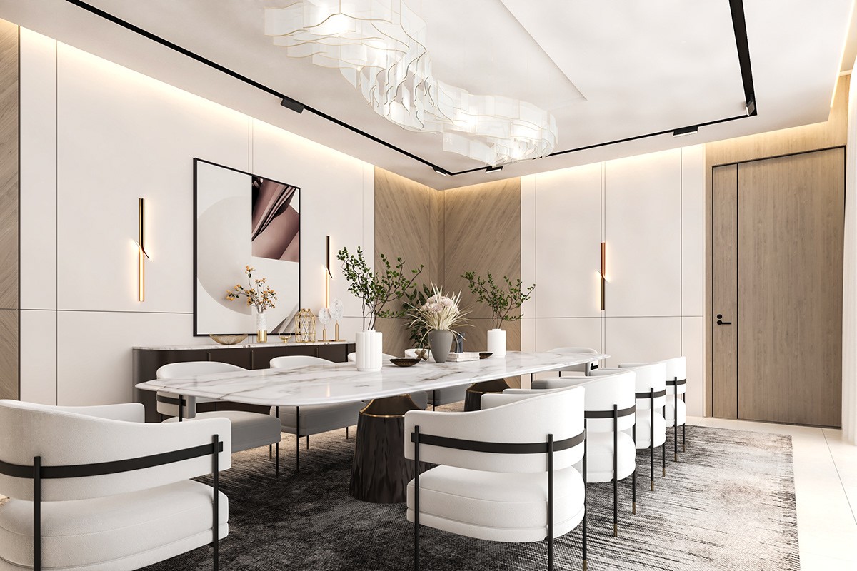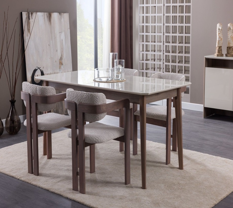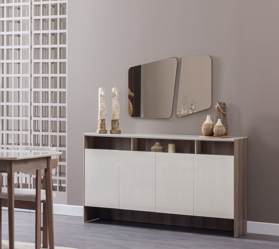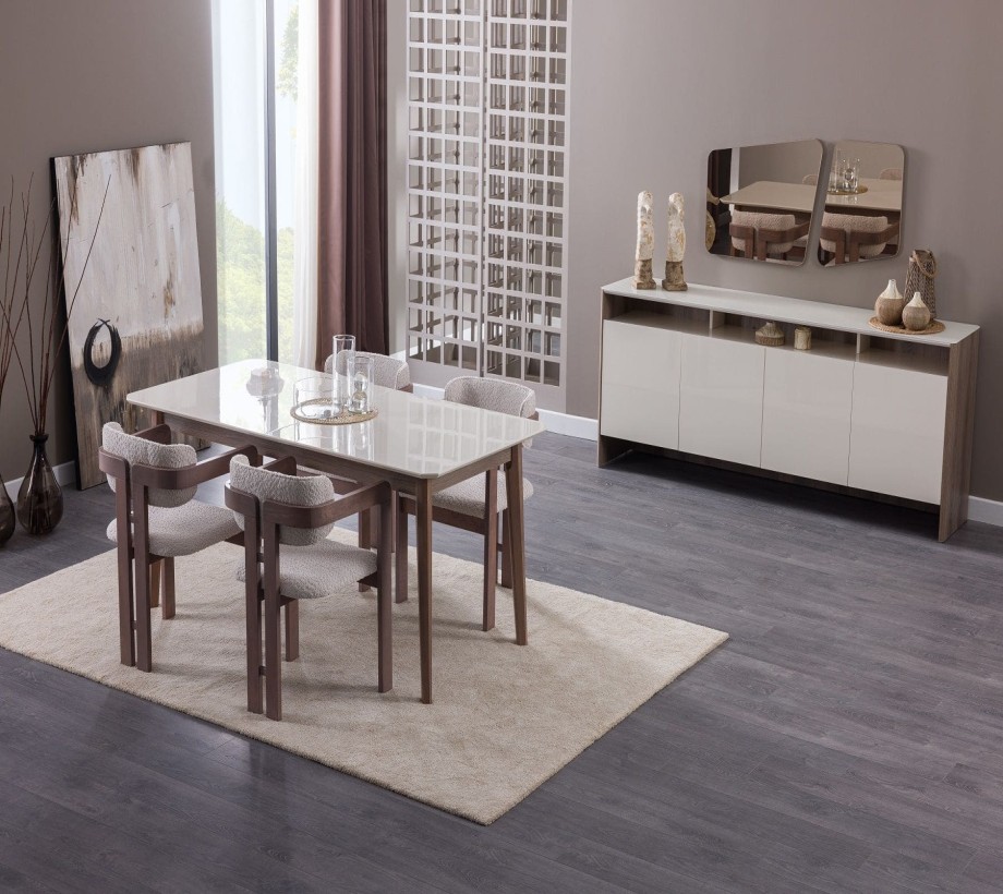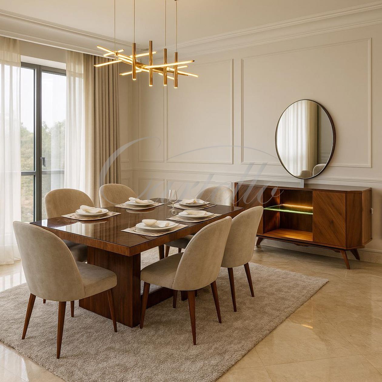 6 كراسي وبوفيه ووحدة عرض بإطار مرآة