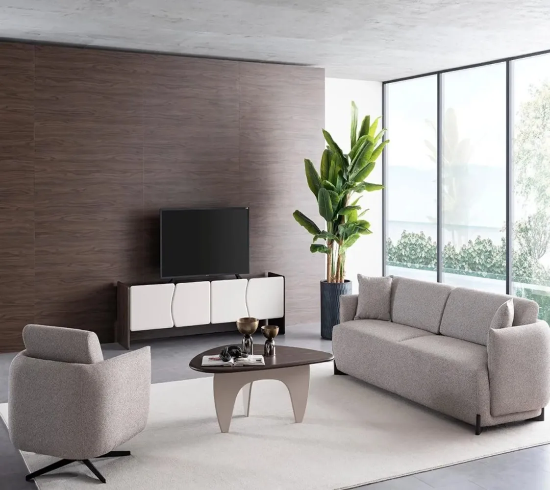 مكونة من 2 كنبه كبيرة مع فوتيه وترابيزة  مصنوع من خامات ذات جودة عالية مثل الحشب الزان والخشب طبيعي