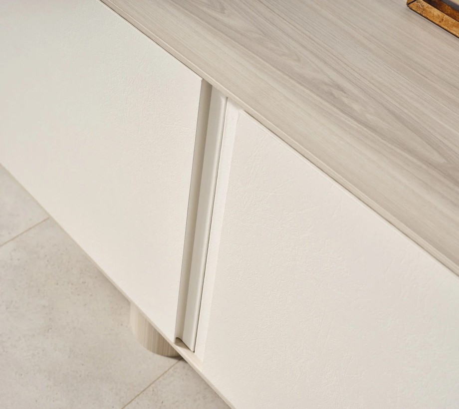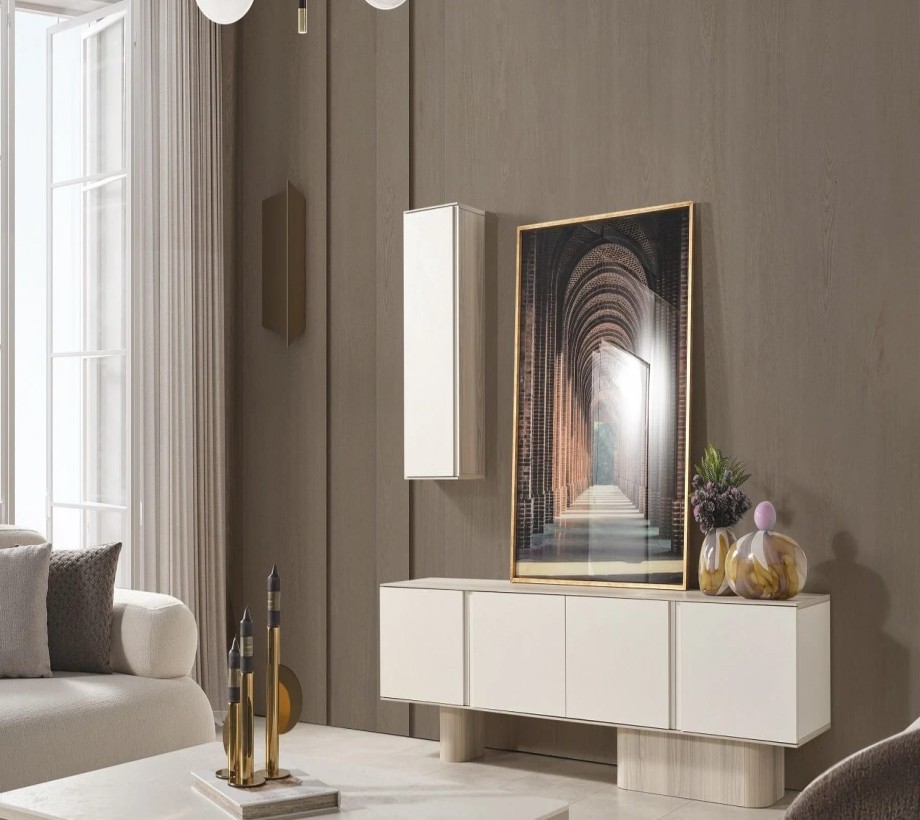 ترابيزة تلفاز خشبية بتصميم مودرن، مزودة بمساحة تخزين مميزة. مصنوعة من خشب طبيعي ومعدن بلون خشبي مع تفاصيل سوداء، تتميز بأناقة وعملية تلبي احتياجات ترتيب وتنظيم الأشياء بمنزلك بشكل ممتاز.