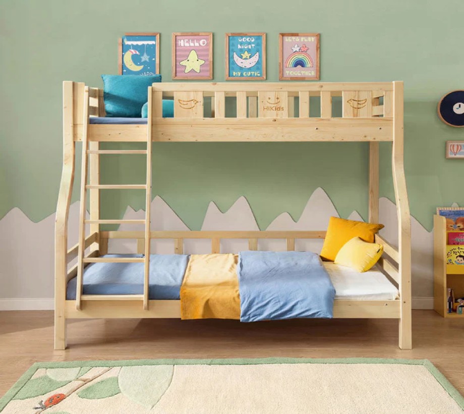 سرير أطفال بطابقين باللون الخشبي