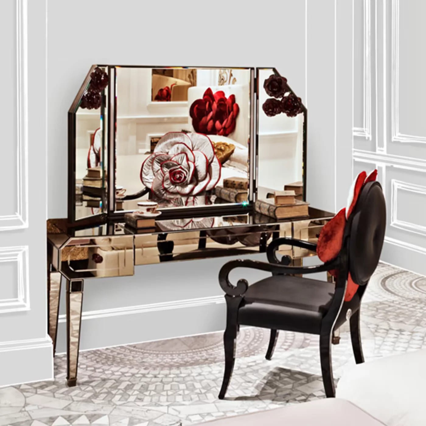 تحتوي هذه التسريحة الراقية الفاخرة على مساحة تخزين واسعة تتضمن أدراج وأرفف. بما في ذلك التفاصيل الدقيقة والتشطيبات، تكون هذه التسريحة رائعة لأي غرفة نوم أو غرفة نوم تحتاج إلى لمسة.