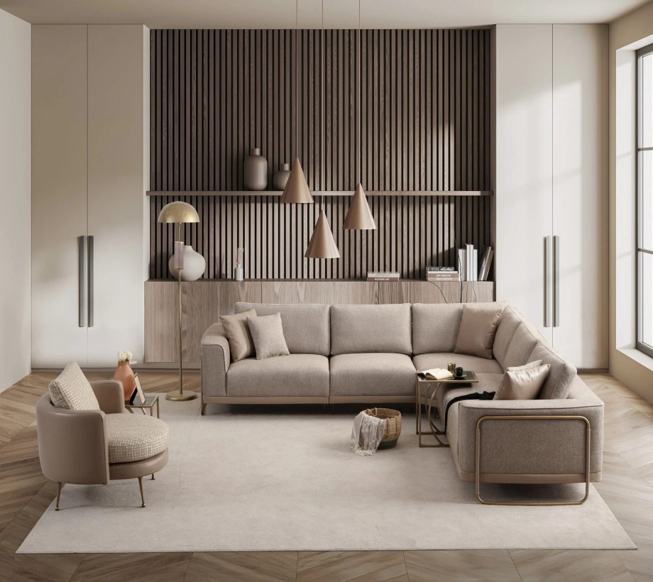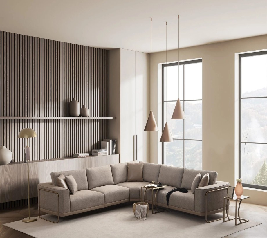 l shape بتصميم عصري الركنه مصنوعه من خشب الزان الطبيعى مع قماش كتان عالى الجودة بطابع عصرى مميز يليق بمنزلك