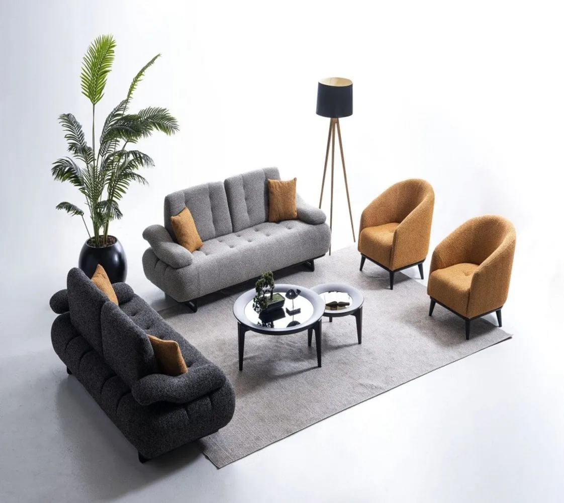 كنبه كبيرة . 2  فوتيه . كنبه ثنائى 2 مقعد . ترابيزة مودرن