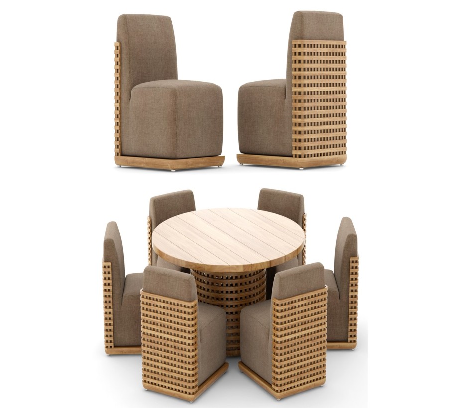 ترابيزة + 8 كراسى متاح شكل الترابيزة دائرى أو مستطيل اللون : خشبى مع كافيه الخامة : خشب طبيعى + قماش الكتان عالى الجودة