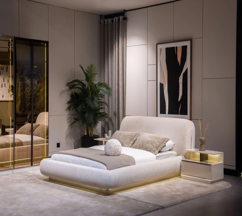 سرير . دولاب تقسيم دريسينج . 2 كومود . تسريحه . بف تسريحة .