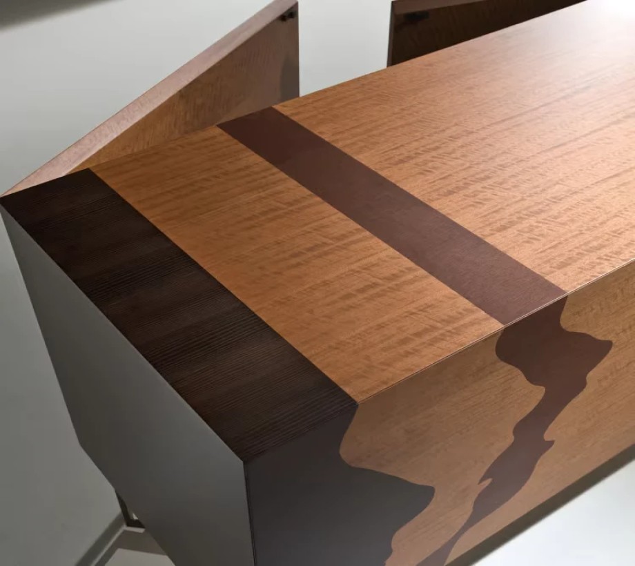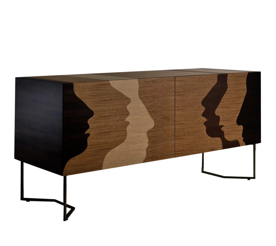 تُعد هذه الخزانة الجانبية الخشبية غير العادية قطعة حصرية من الحرفية الرائعة، على السطح ظلالًا مختلفة من الخشب لإنشاء ترتيب ثلاثي الأبعاد للصور الظلية. يفتح البابان اللذان يتم دفعهما وسحبهما للكشف عن أرفف داخلية...
